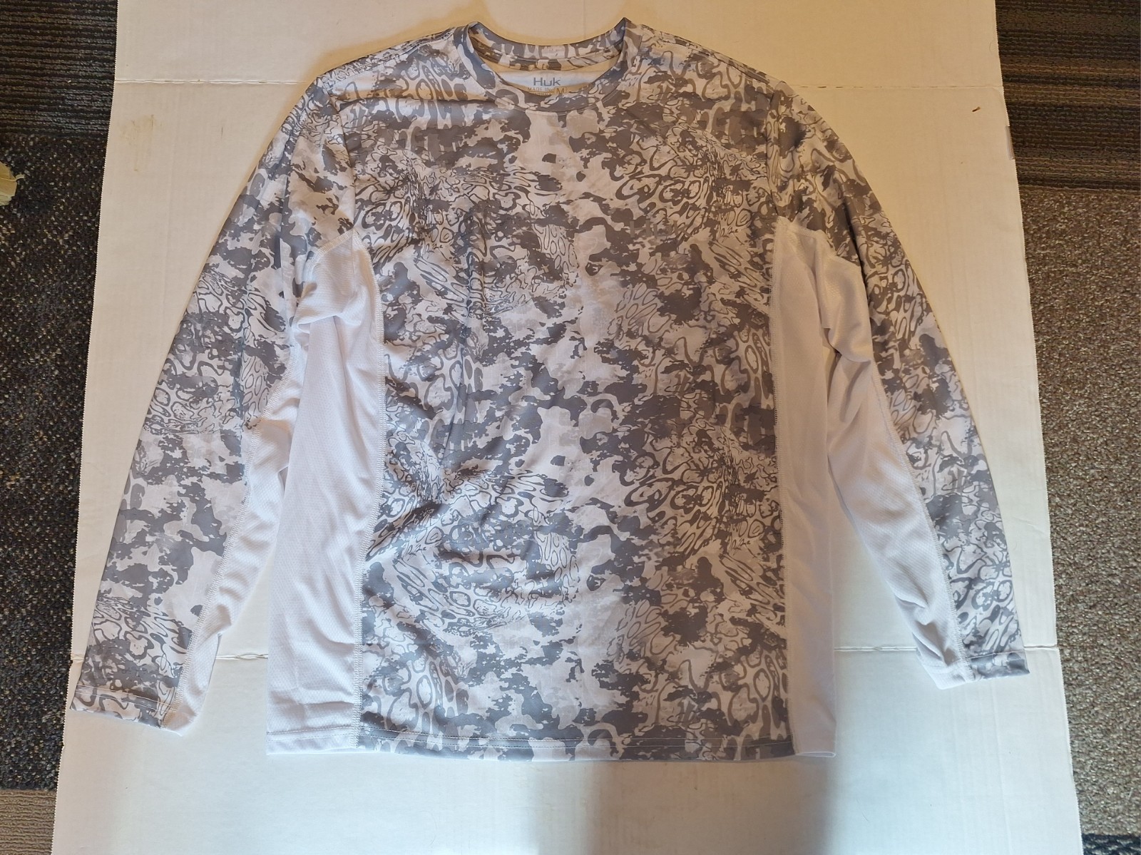 - HUK Performance Fishing Long Sleeve Crew Shirt (Men's Medium) Gray & White Camo