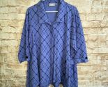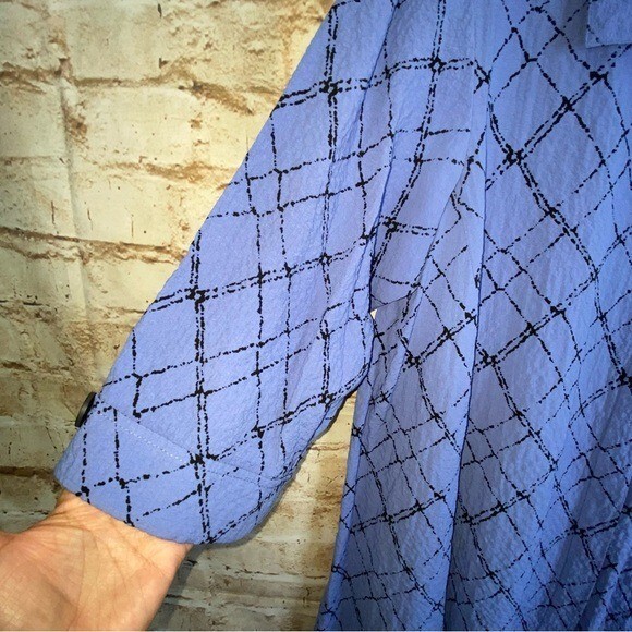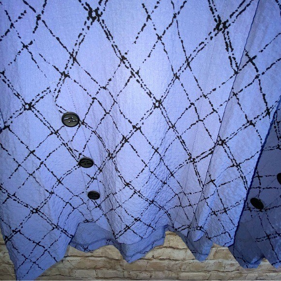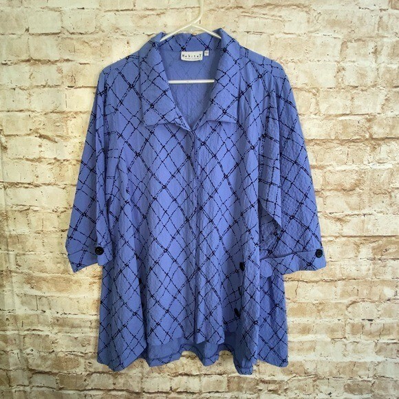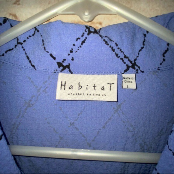 Habitat Laglenlook Blue Button Front Top Size Large - 58 rayon 41 Polyester 1 spandex - 3/4 sleeves, button detail, flowy oversized top. Blue with black