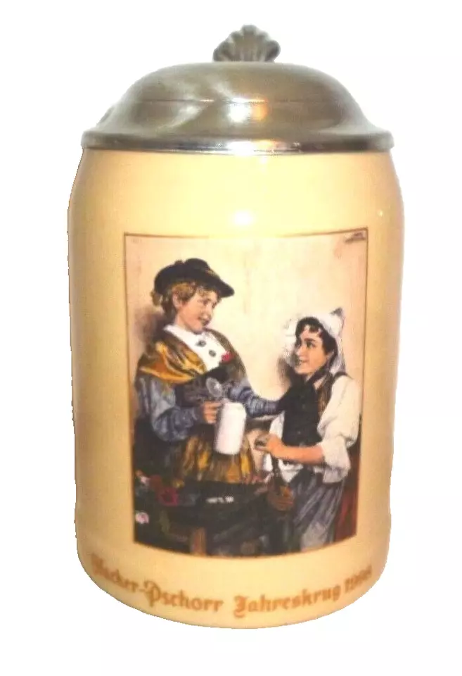 For sale is a wonderfull, rare Hacker-Pschorr Jahreskrug lidded Stein from the Hacker-Pschorr brewery in Munich, Germany.