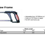 The Crescent Nicholson 80950 is a 10" long economy hacksaw frame designed to hold blades between 10" and 12" long (250mm to 300mm). The contoured handle fits comfortably in your hand, and the blade can cut up to 2.75" deep. This is a lightweight, easy-to-handle, general-purpose hacksaw handle for DIY use around the home.
