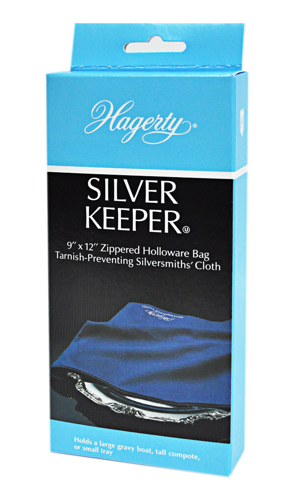 Made from Hagerty Silversmiths? Cloth with R-22, Hagerty Tarnish Preventing Silver Keepers are specially treated to constantly trap tarnish-causing sulfur gases. Holds a large gravy boat, tall compote, or small tray.
