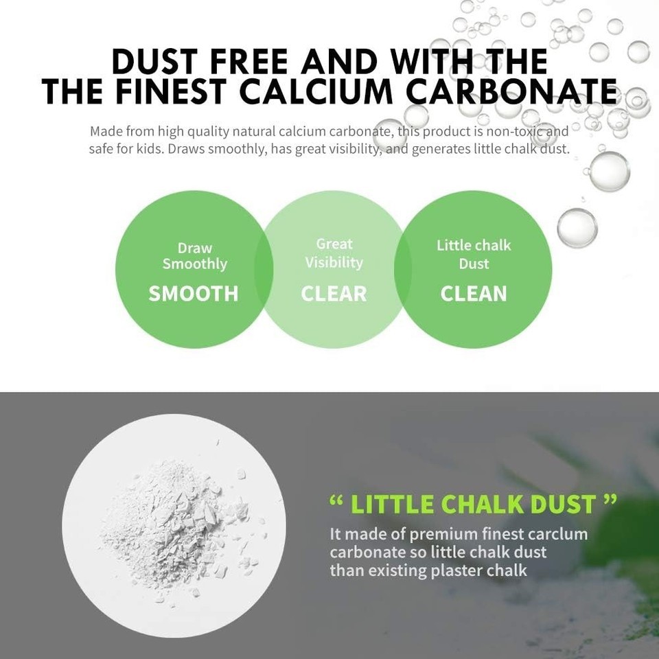 NO MISTAKES: Our chalks erase easily leaving little to no residue on the chalkboard when removed. Chalk can be easily washed from most articles of clothing without leaving any unwanted permanent marks. Chalk generates little dust and fallout minimizing chances of smudging and messes when writing or drawing