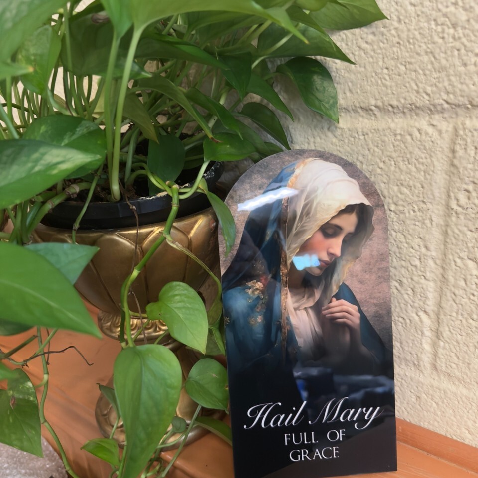 You are purchasing a beautiful wood plaque with an image of Our Blessed Mother/titled "Hail Mary. full of Grace. Bring this plaque to your home as a reminder that She is always there to listen to your prayers and intercede for you.