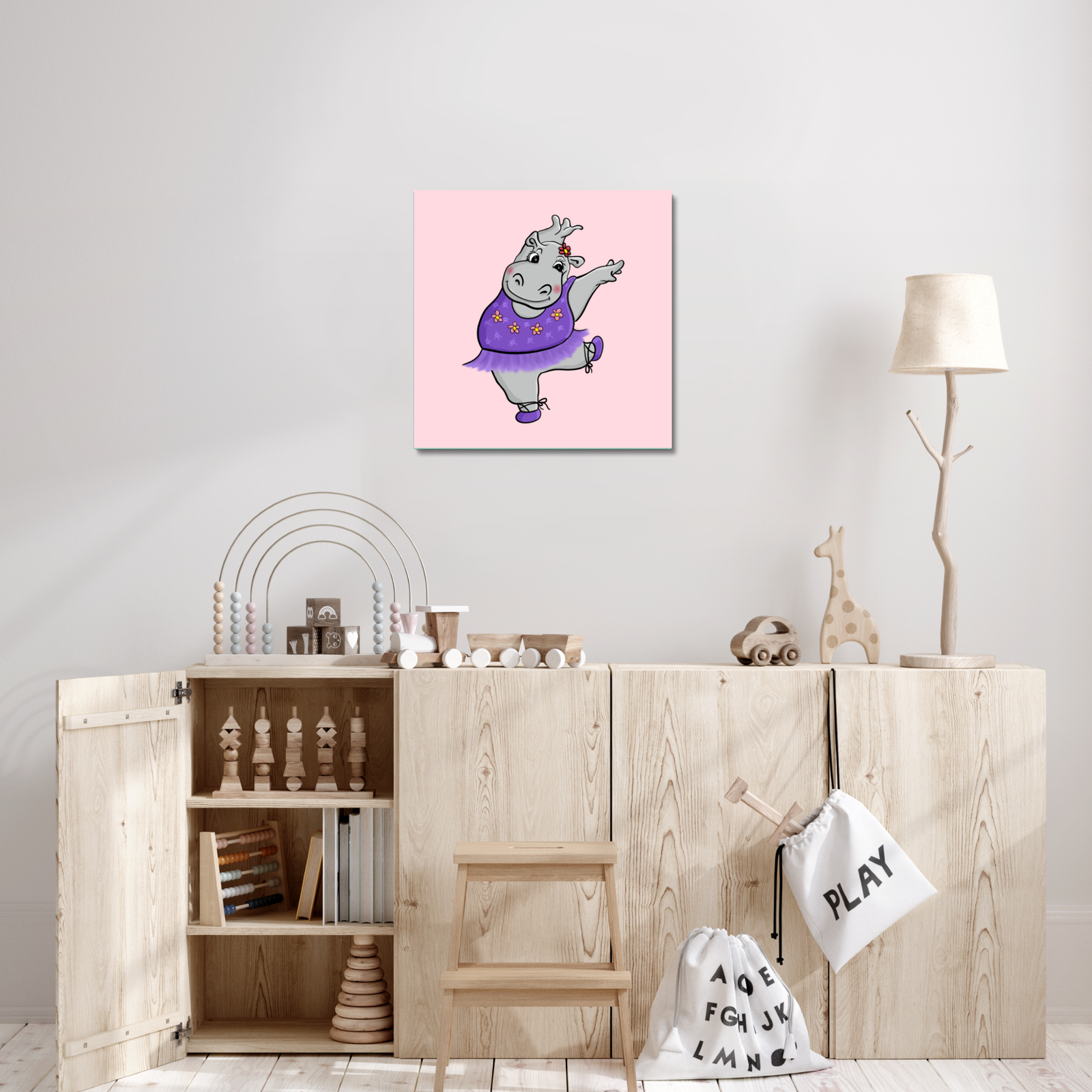 - Hailey the Hippo Canvas by Dancing Littles Jungle