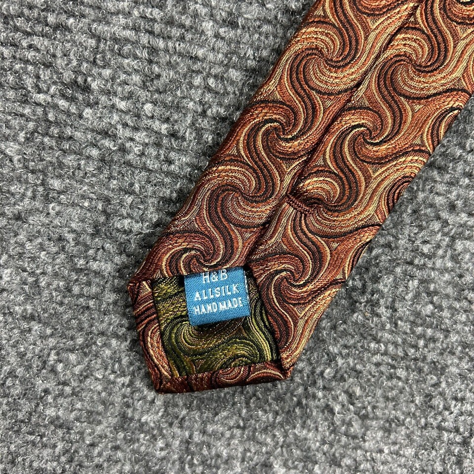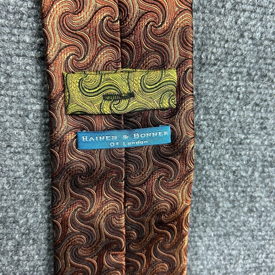 - Haines & Bonner Neck Tie Mens 3.5" x 58" Brown Abstract Waves Silk Hand Made
