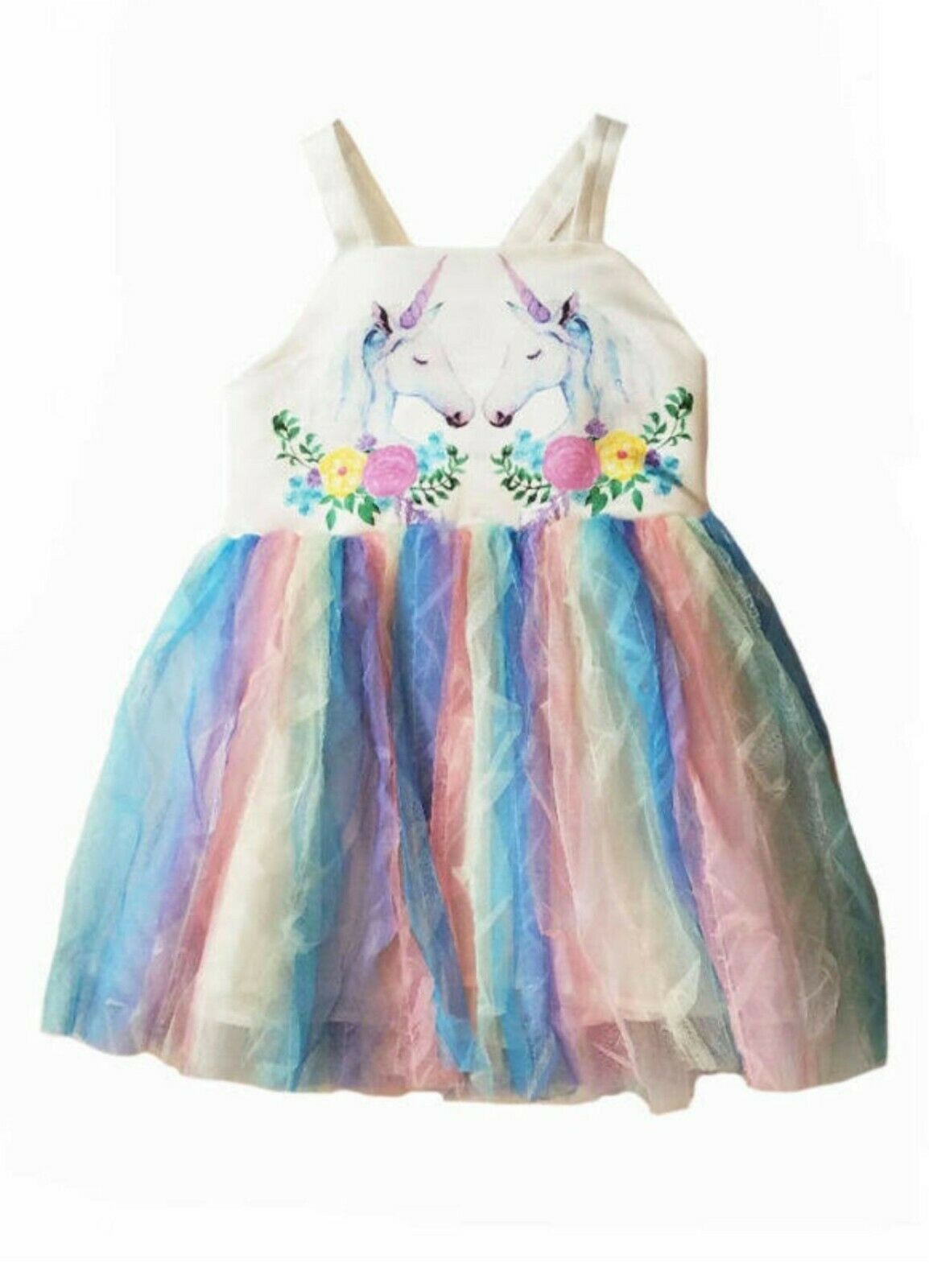 - Halabaloo Girls Rainbow Unicorn Dress Sz 5