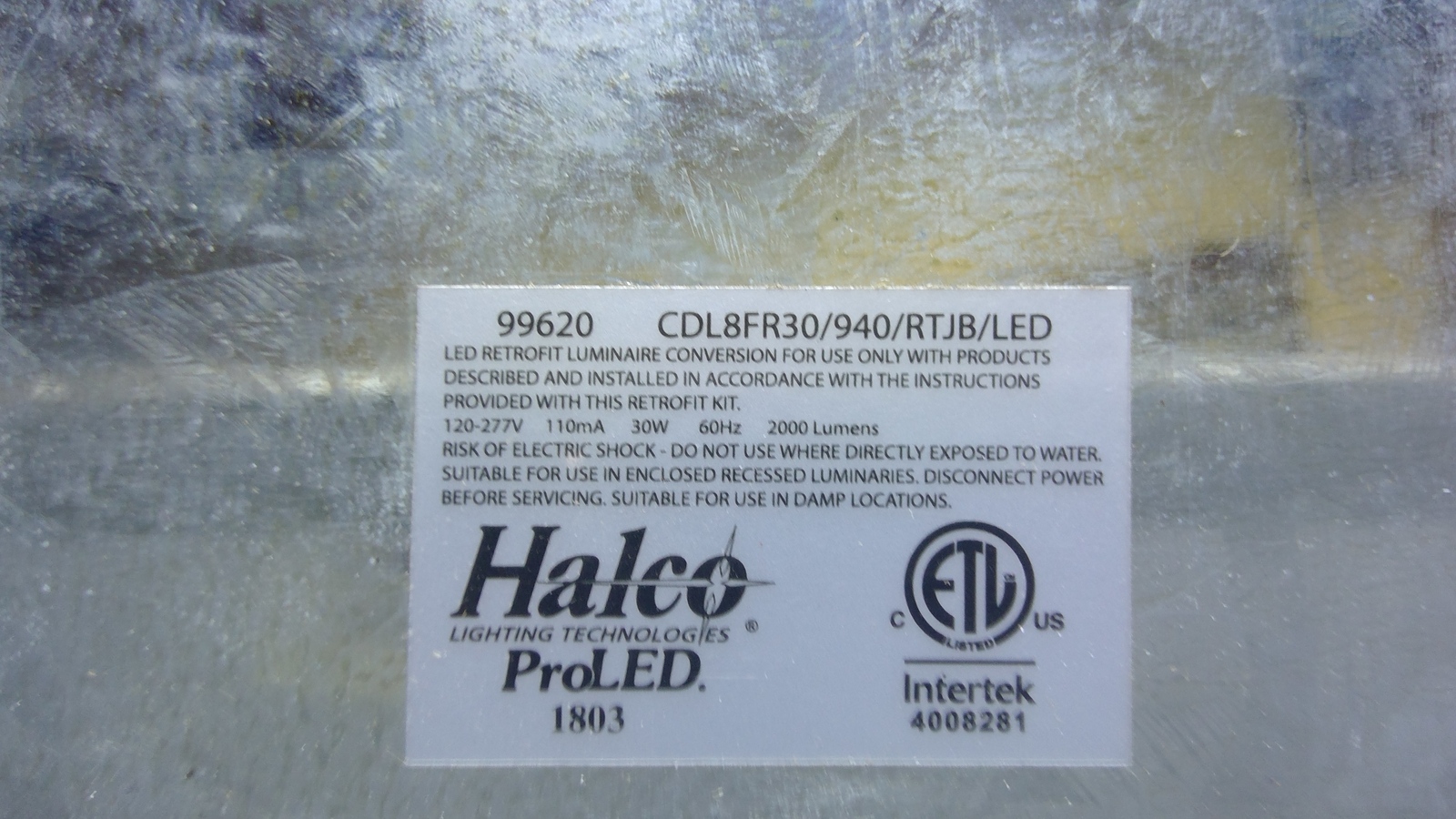 - Halco ProLED CDL/8FR30/940/RTJB/LED 8" Downlight Dimmable White OC:99620
