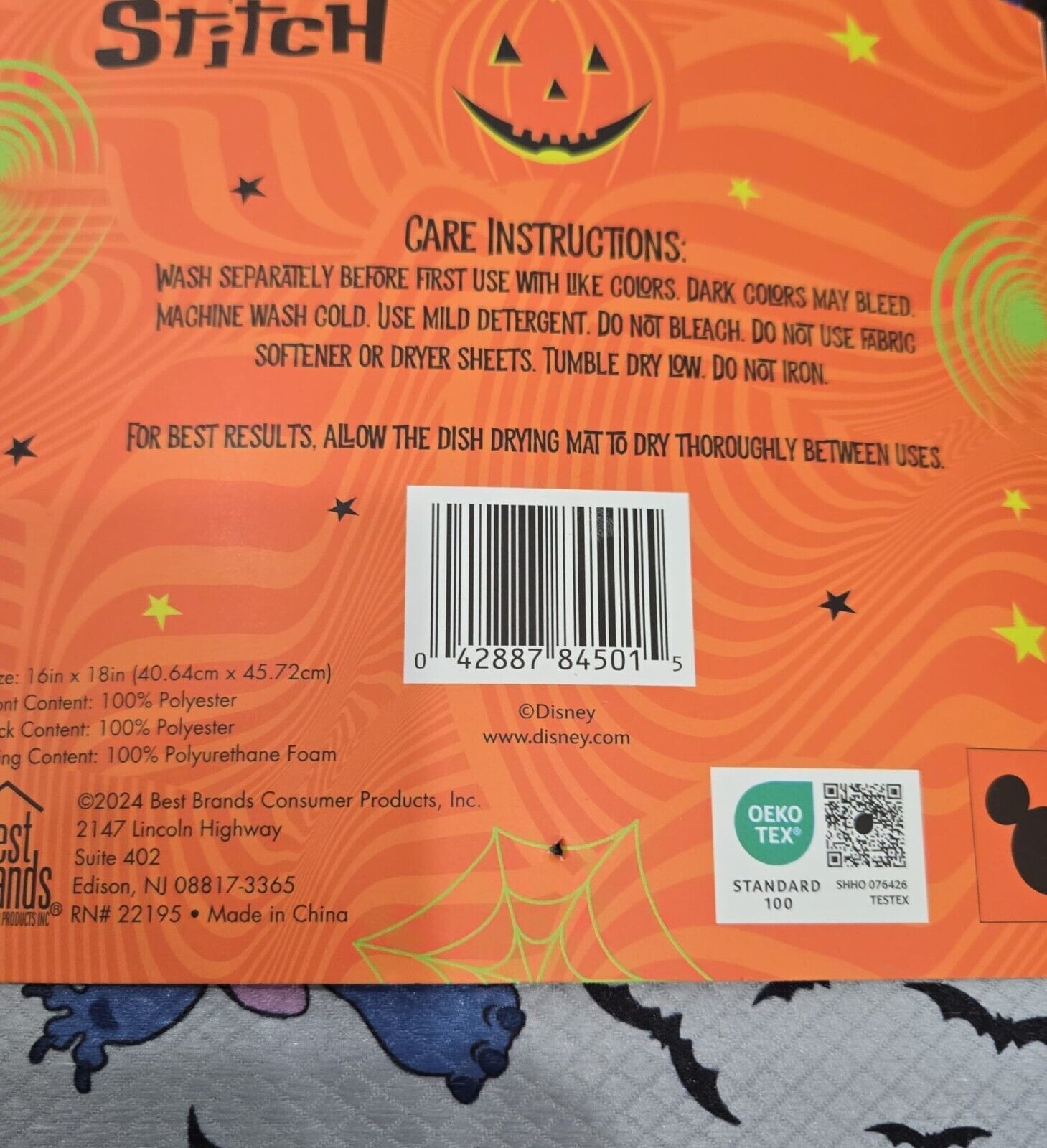- Hall. Disney Stitch Dish Drying Mat 16in x 18 in