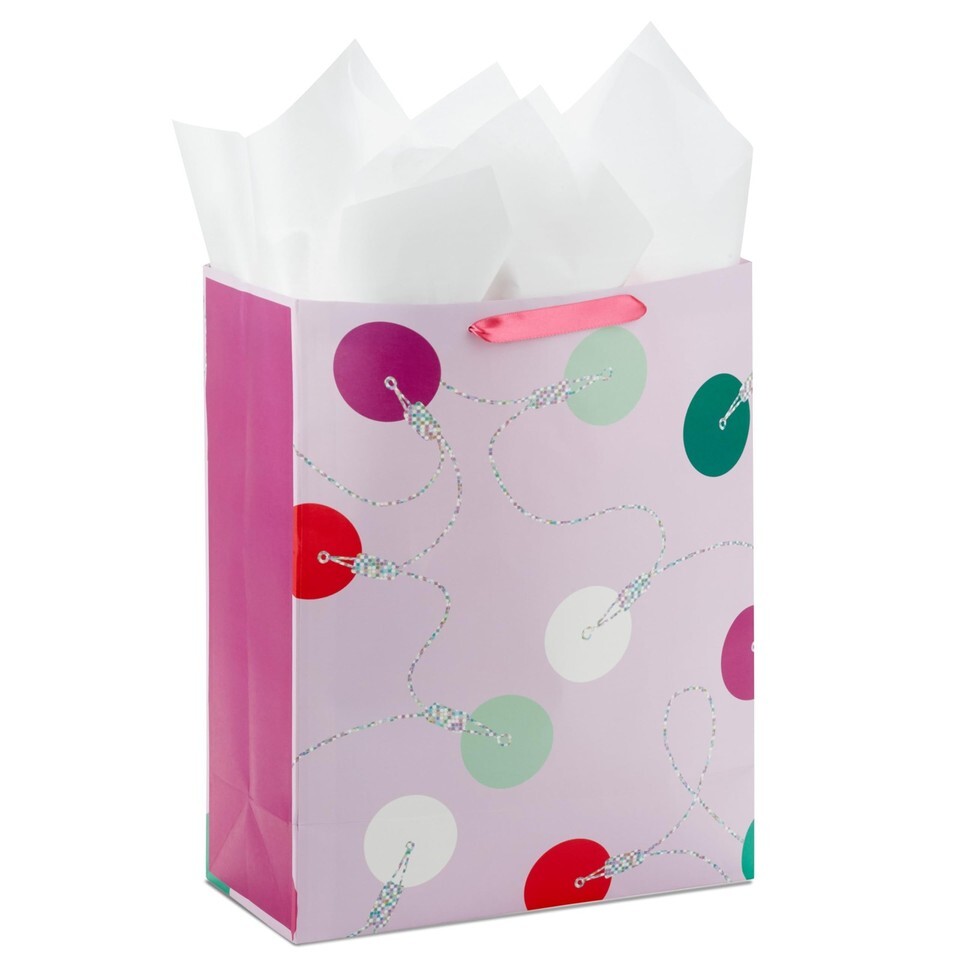 - Hallmark 15" Extra Large Holiday Gift Bag Trendy Lights Pink with Tissue & Tag