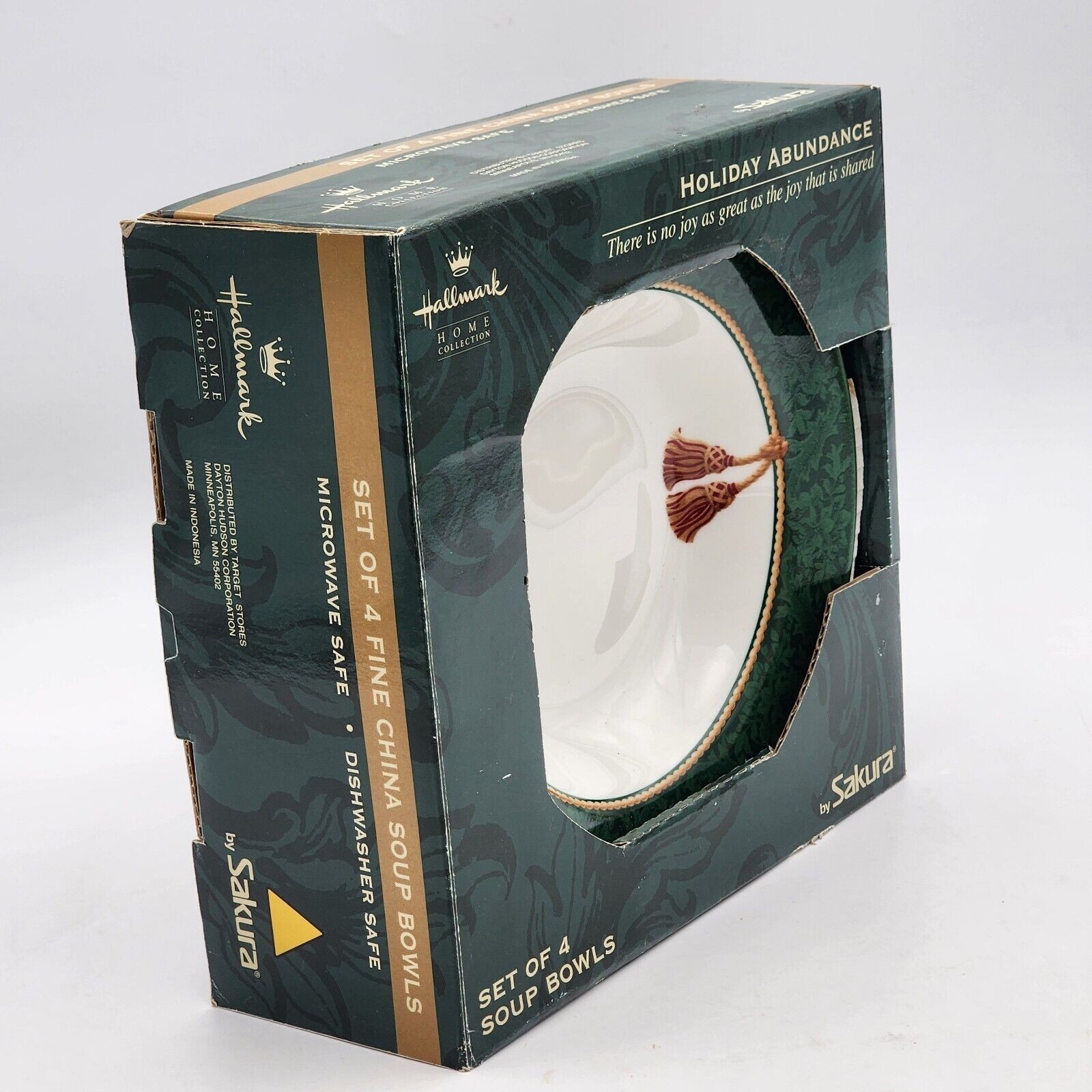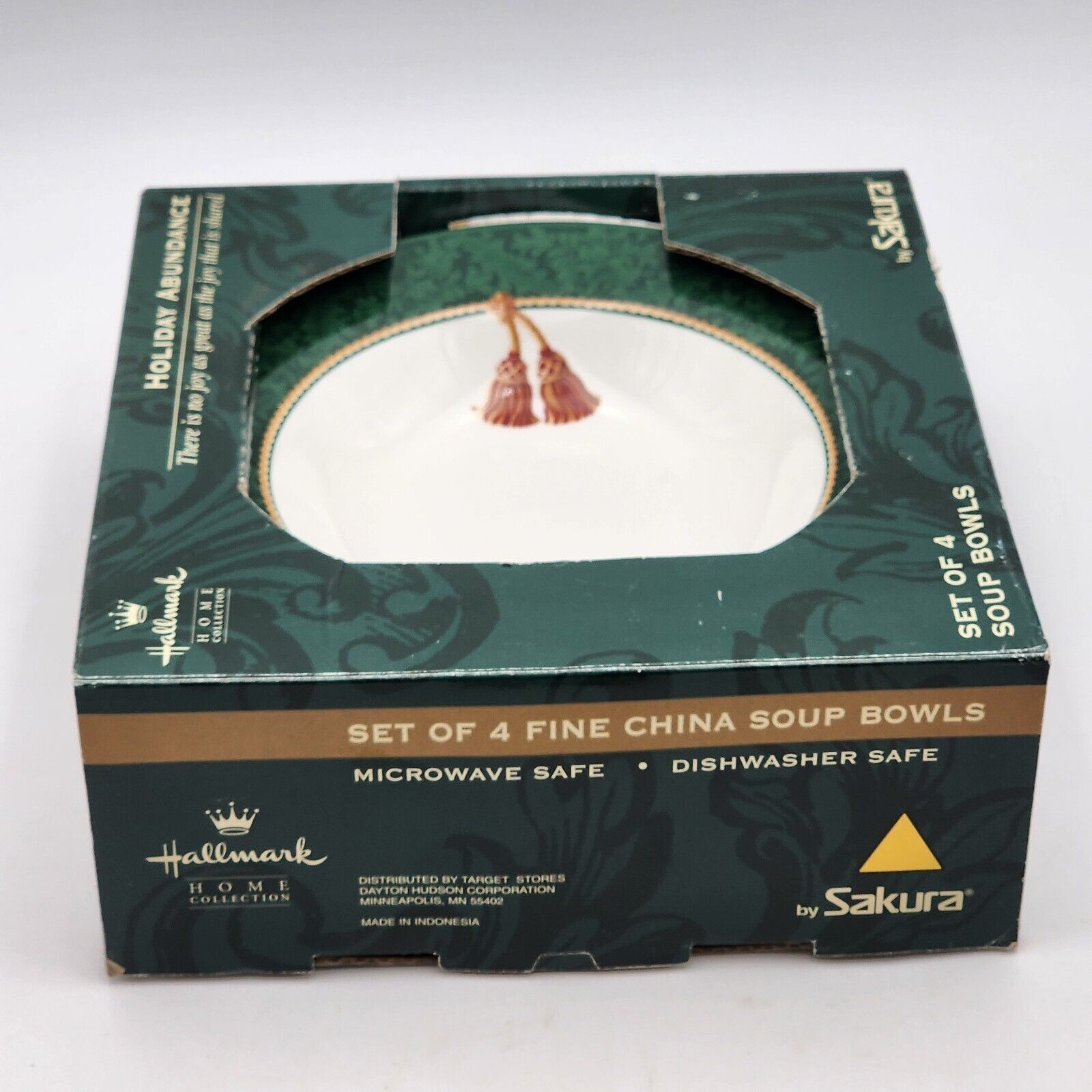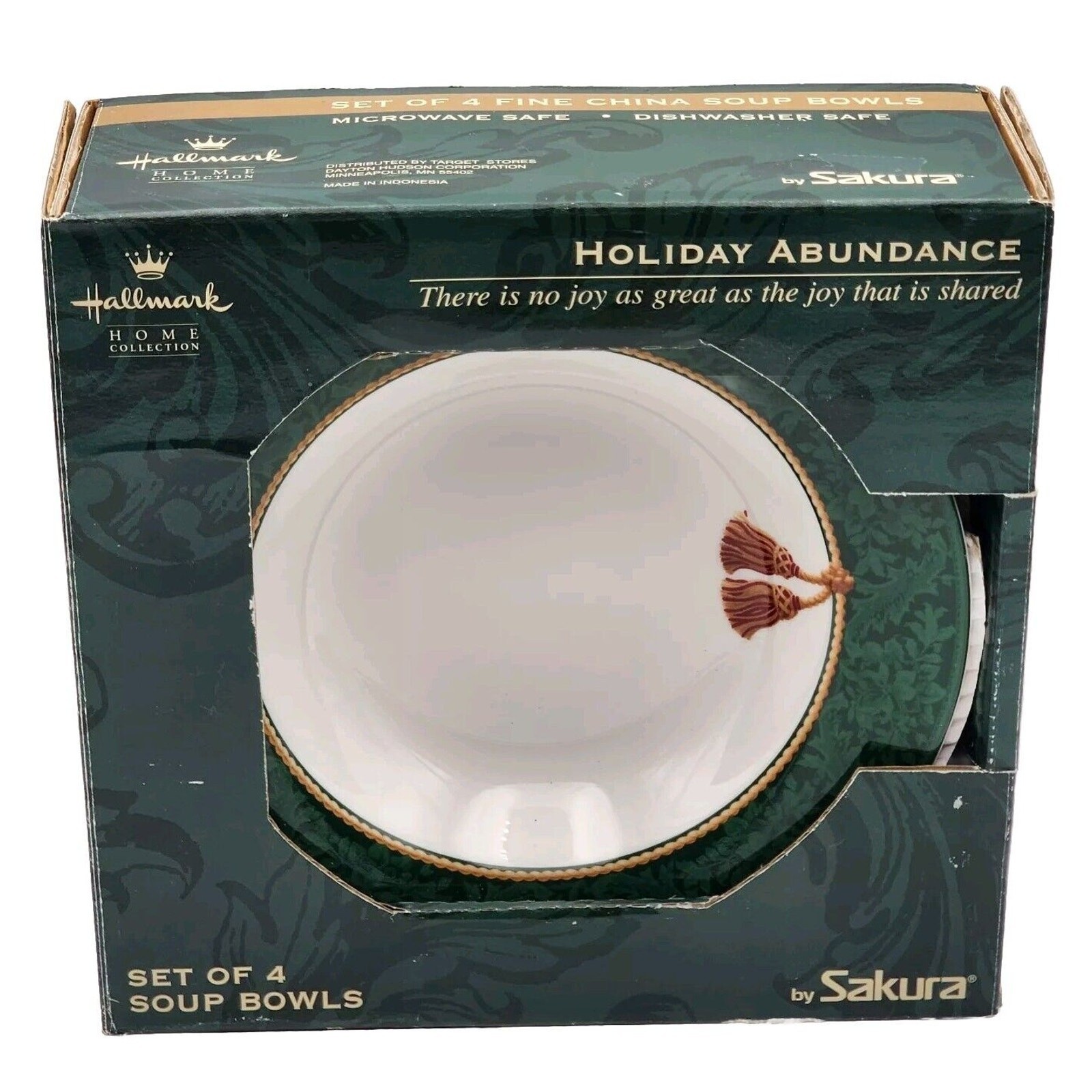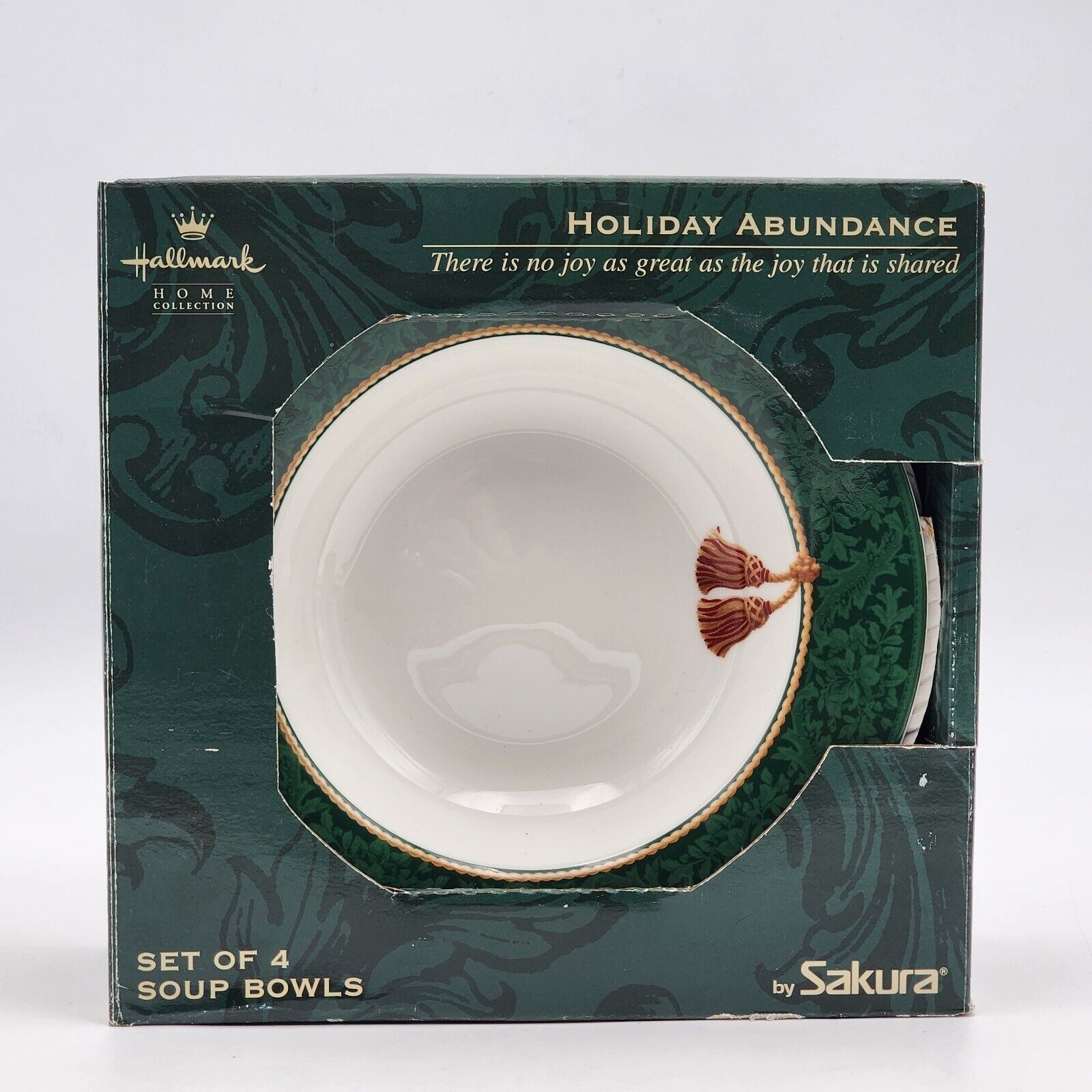 - Hallmark HOLIDAY ABUNDANCE Set Of 4 Green Fine China Soup Bowls by Sakura In Box