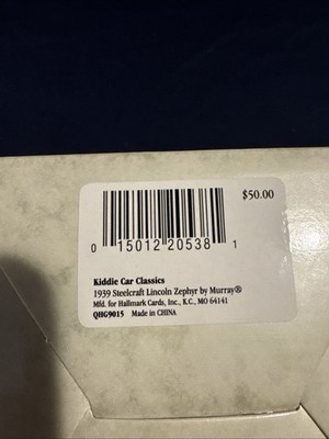 The Hallmark Kiddie Car 1939 Steelcraft Lincoln Zephyr by Murray Toy Pedal Car is a collectible decorative item that features a classic design from 1939. Made of metal with a multi-color finish, this novelty pedal car is part of the Kiddie Car Classics product line by Hallmark. Perfect for collectors or those looking to add a touch of nostalgia to their decor, this unique piece is sure to stand out in any collection.