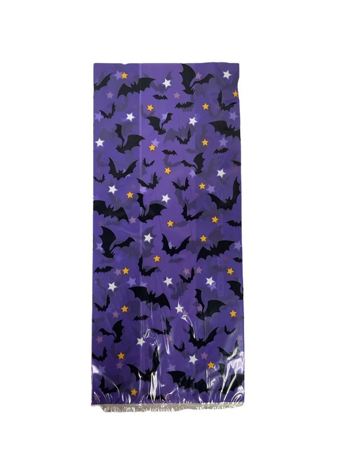 Happy Halloween Cello Treat Bags. Comes in 3 different styles: bat, spider and pumpkin. You get 25 counts each style, total of 75 cello treat bags. Comes with metallic wire to tie up the bag for treats or favors.