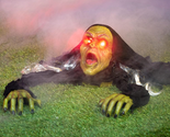 Scary Halloween decoration: our zombie groundbreaker decoration consists of a green zombie head and 2 arms covered with clothes, it?s time to surprise trick-or-treaters with the zombie groundbreaker with spooky sounds and flashing eyes