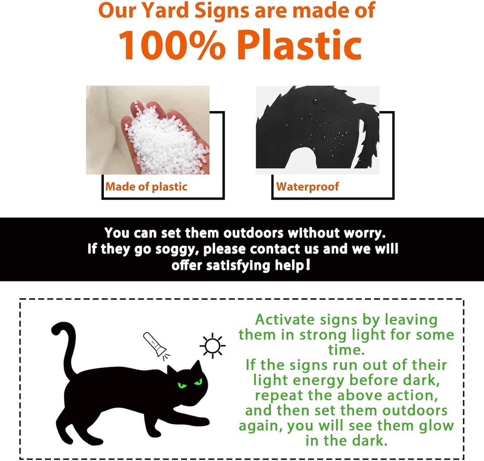HIGH-QUALITY: Our black cat Halloween lawn decorations are made of thick corrugated plastic sheets. Sturdy and durable as outdoor Halloween decorations. Waterproof and withstands weather well, no matter wind or rain.