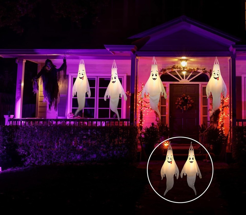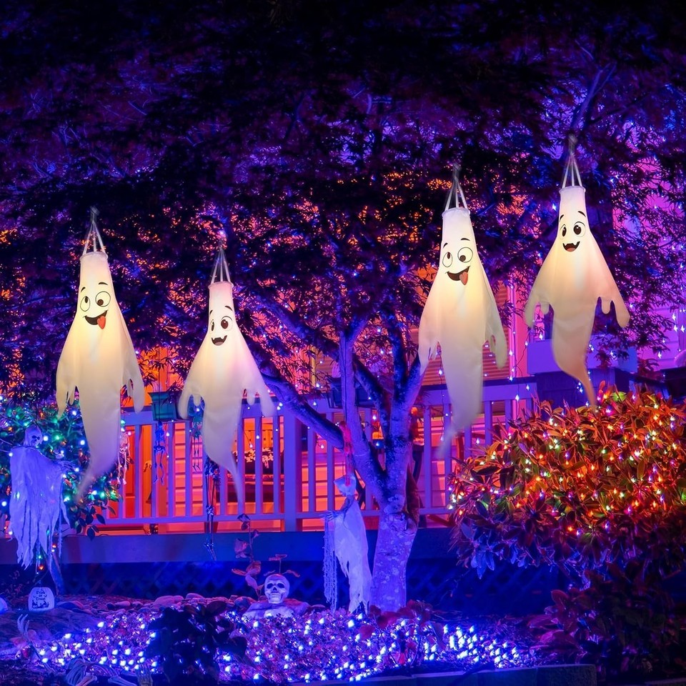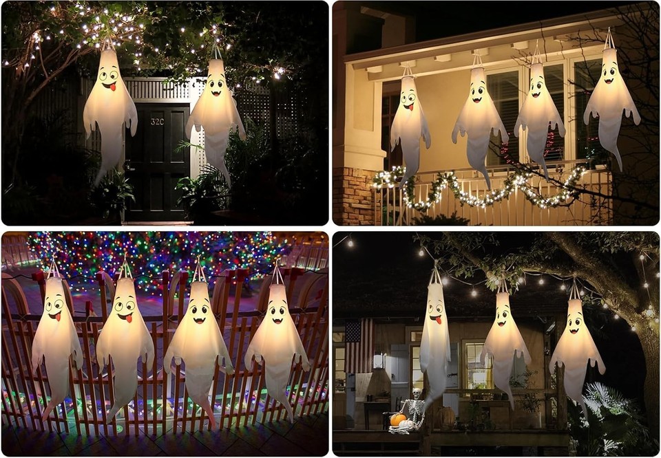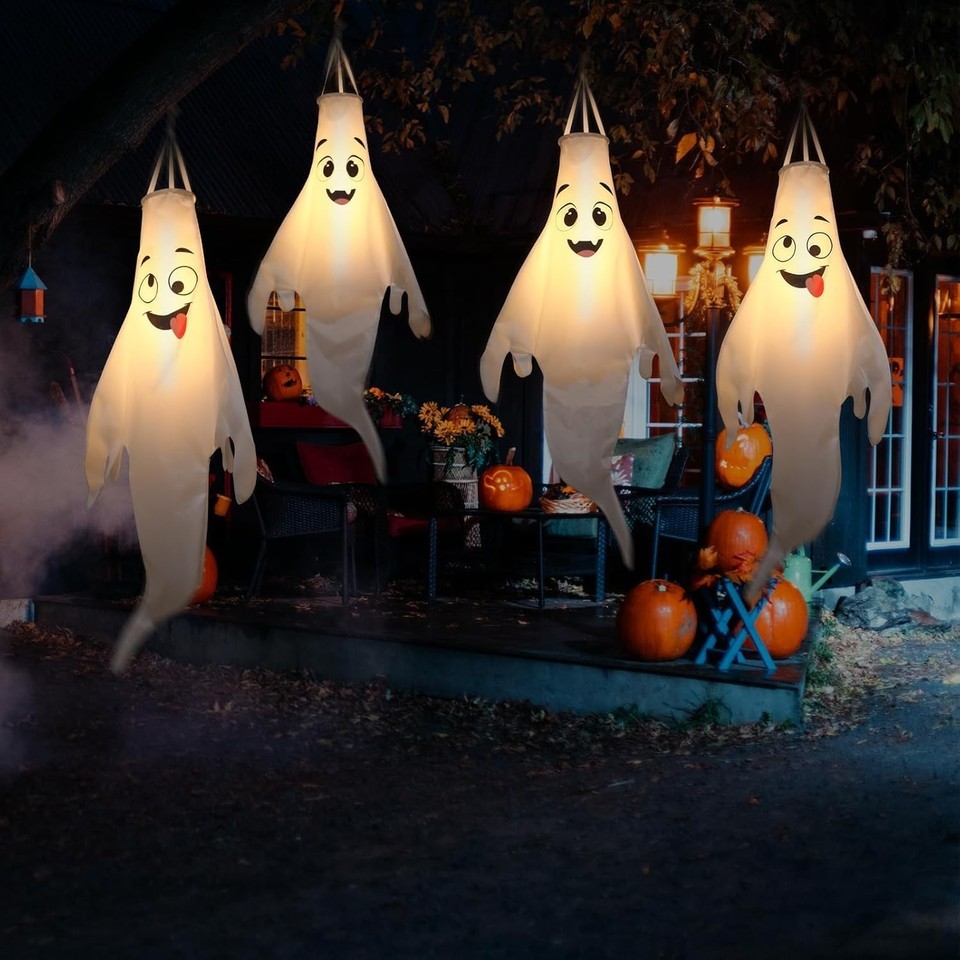 Halloween-Decorations-Outdoor Hanging-Ghost Windsocks for Trees with Timer, LED