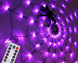 Halloween Decorations Spider Web Lights - 4FT Diameter 70 LED with Black Spider, Waterproof Net Lights, Remote Control, 8 Modes Cobweb Halloween Decorations for House Garden Indoor Outdoor (Purple)
