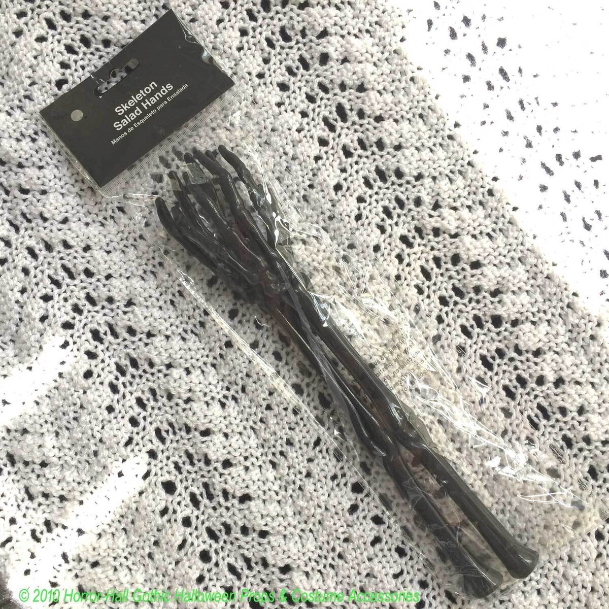 Product description: BLACK PAIR Halloween Gothic Plastic SKELETON HAND TONGS SERVERS Creepy Novelty Zombie Arm Hand Bones Kitchen Food Pasta Salad Serving Forks Utensil Tableware Walking Dead Steampunk Pirate Over-the-Hill Birthday Party Hostess Gift Haunted House Horror Prop Decoration-LEFT and RIGHT-2 Piece SET