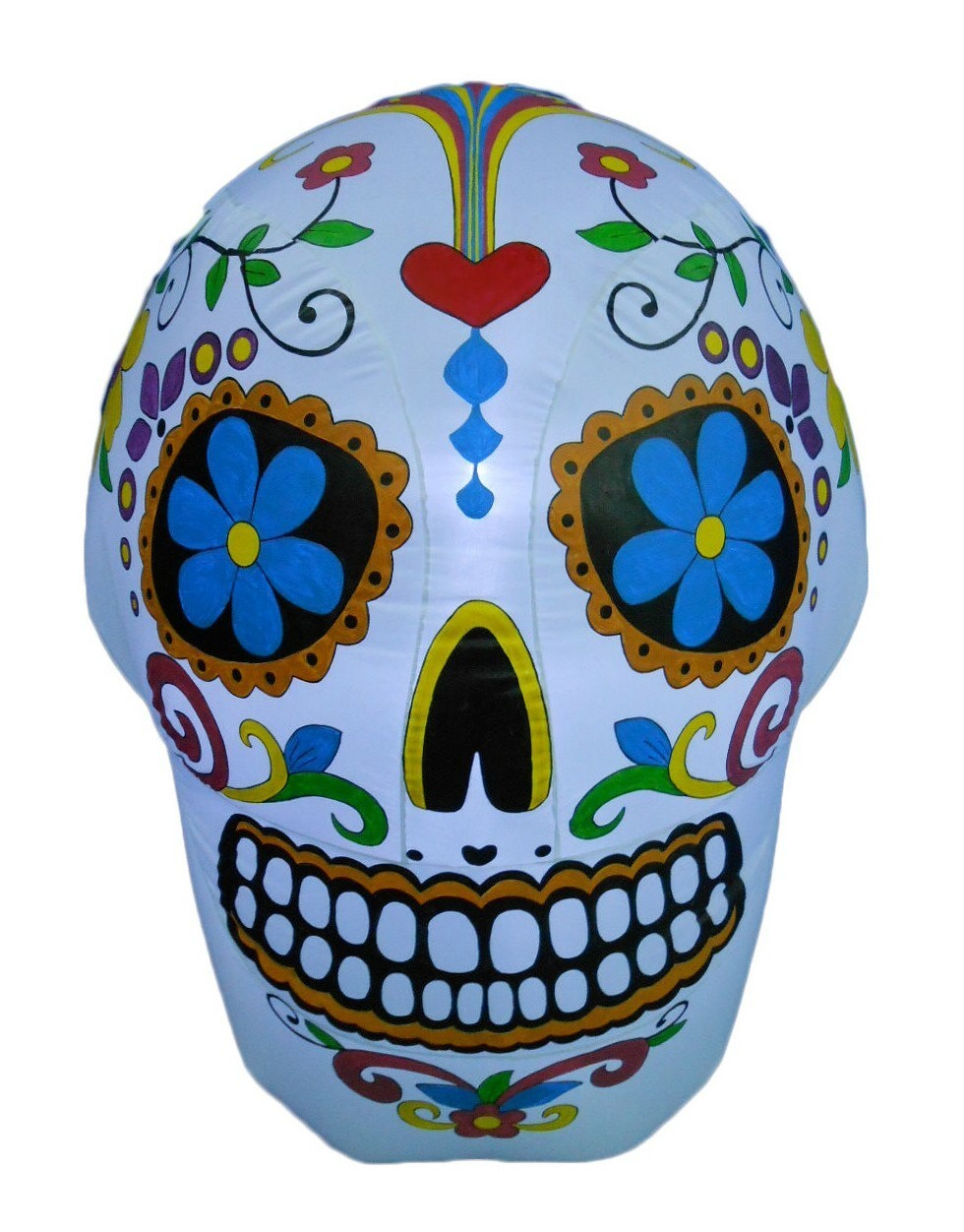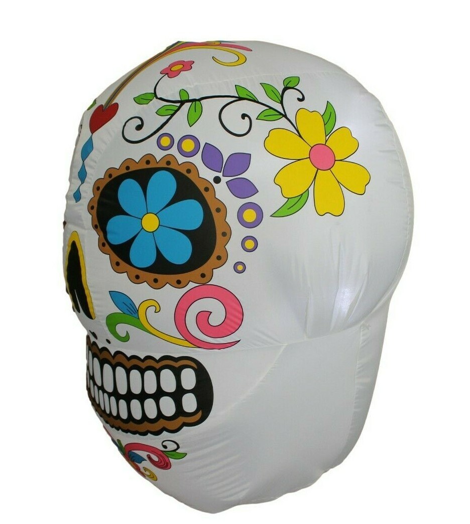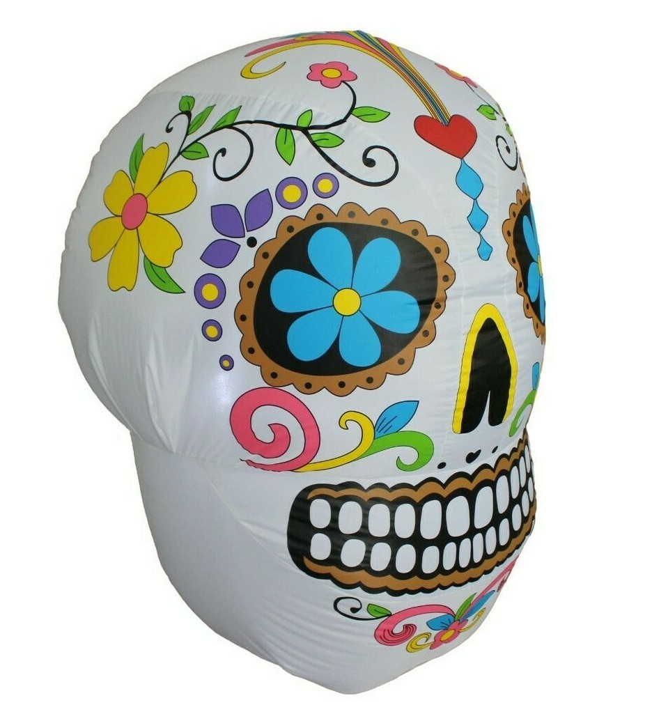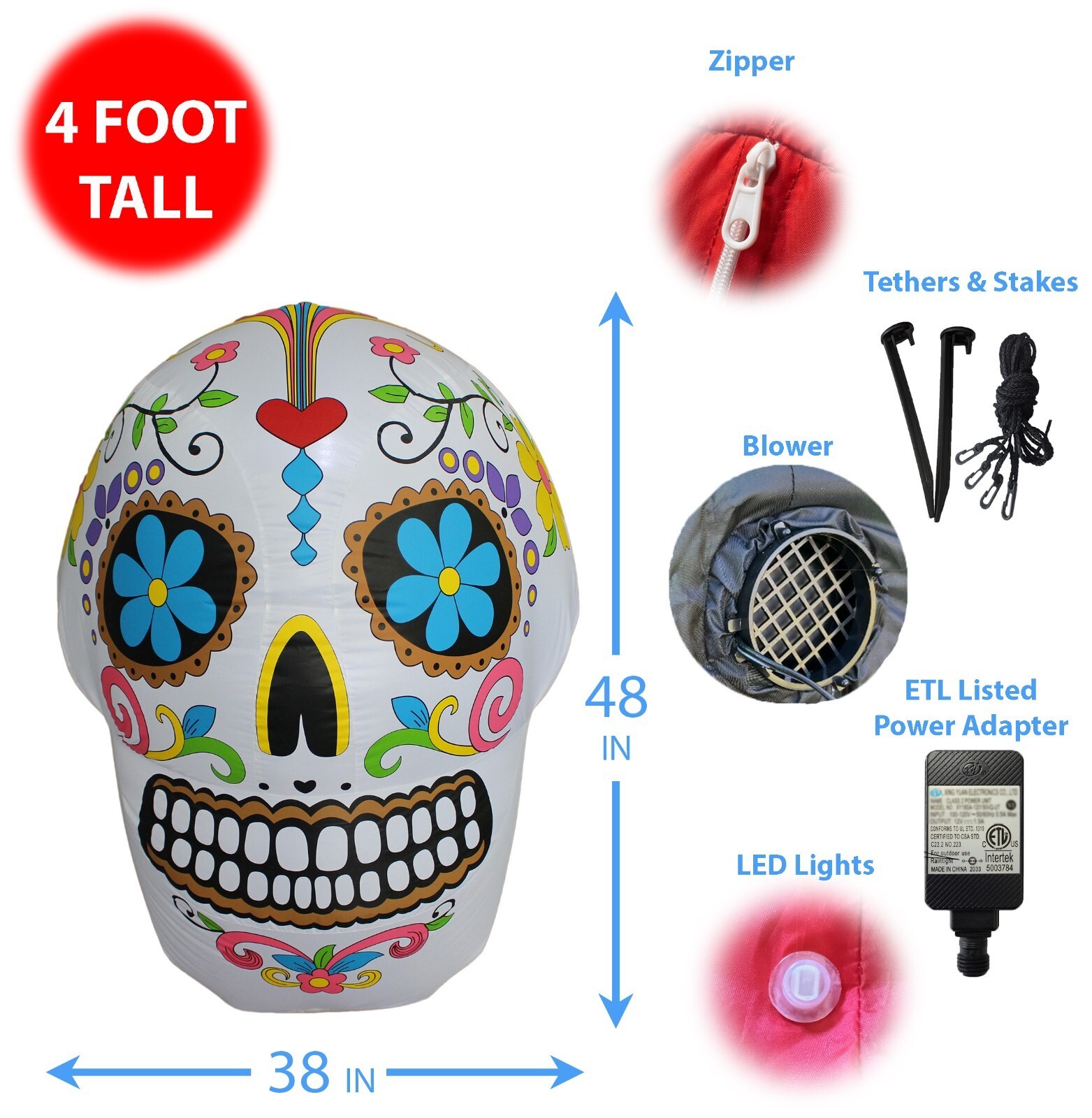 4 Foot Tall Lighted Halloween Inflatable Colorful Skull