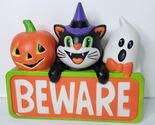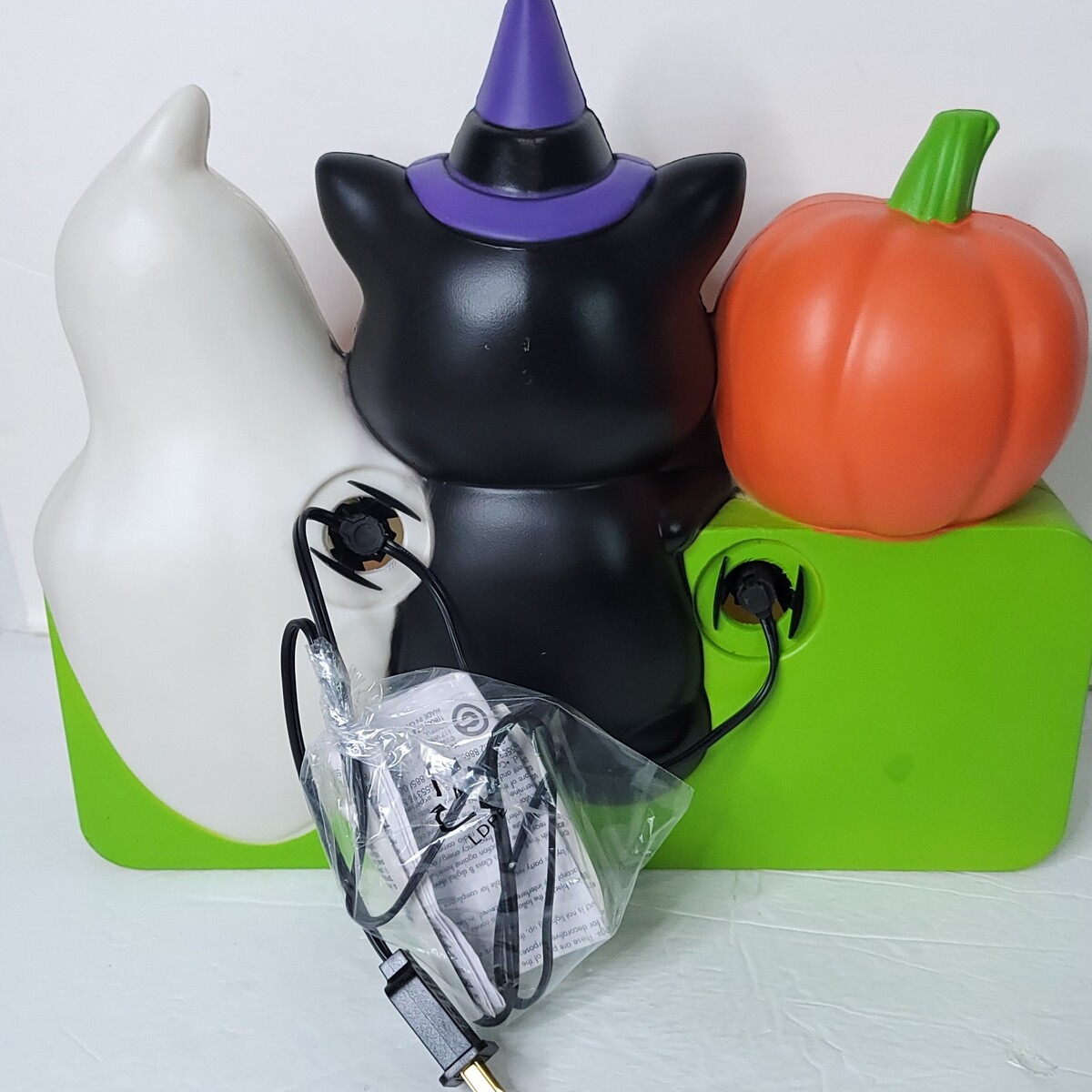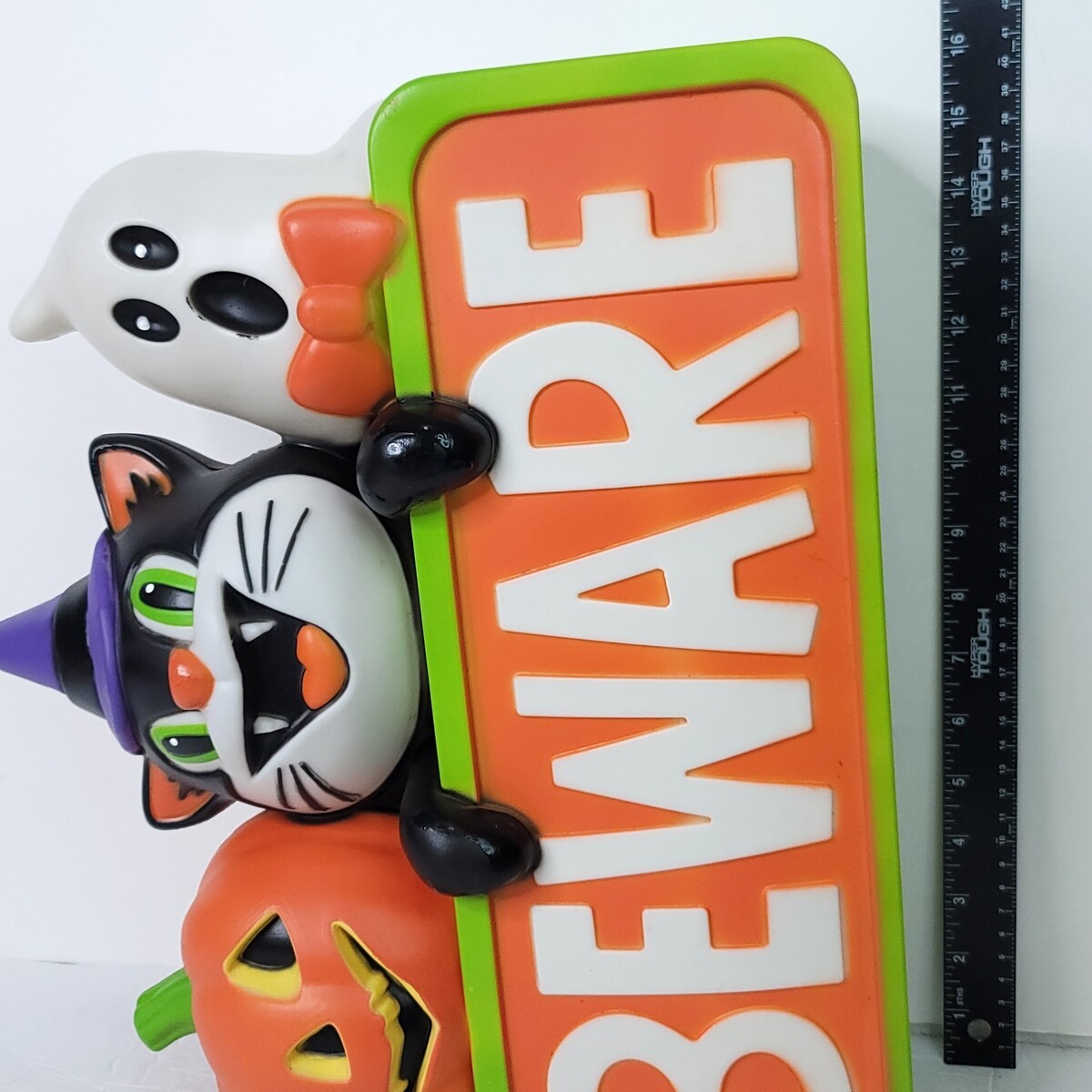 - Halloween Lighted Blow Mold Vintage Style BEWARE Pumpkin Black Cat Ghost 15" NEW