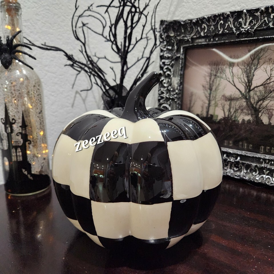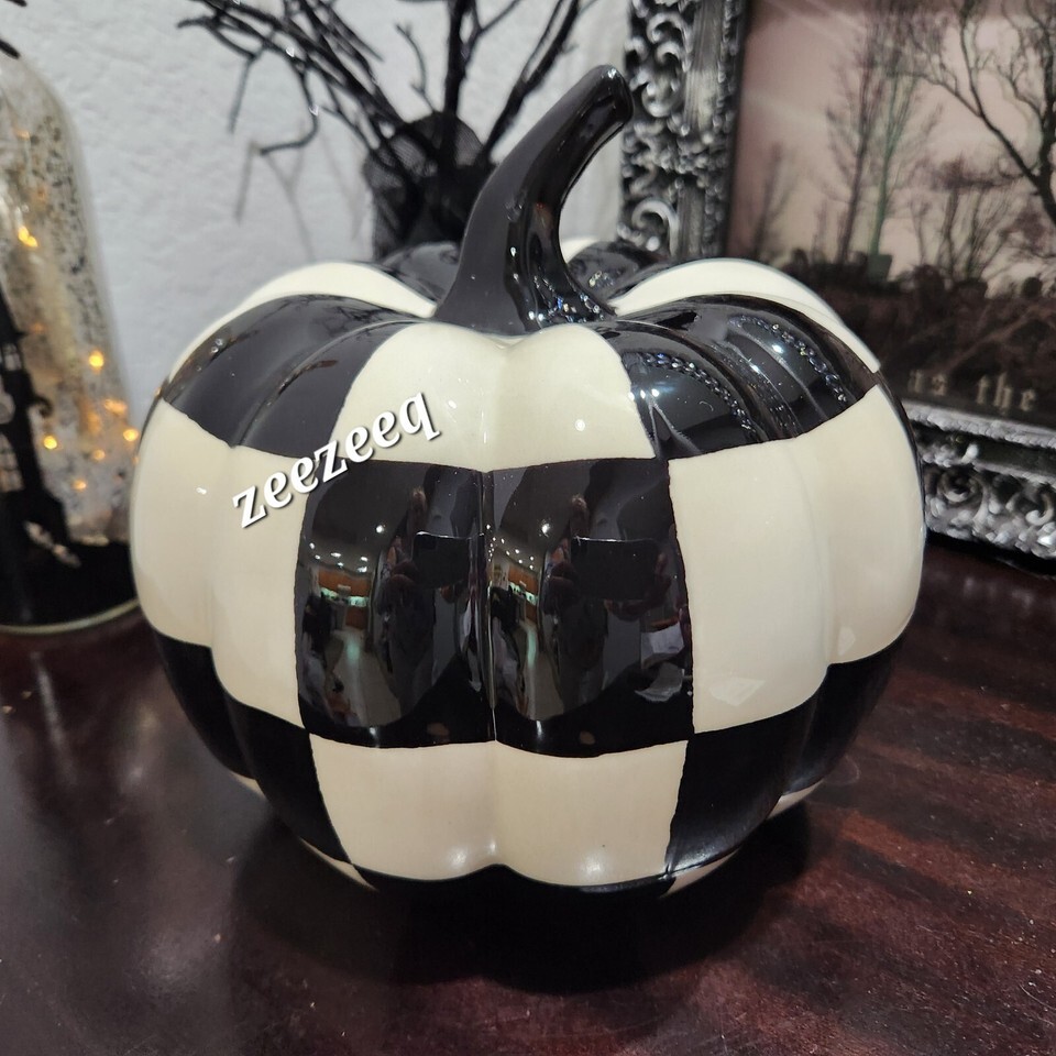 Up for sale we have this beautiful Mackenzie Style Black White Harlaquin Ceramic Pumpkin for your Halloween or Thanksgiving decor. Made of ceramic and measures approx 7" tall including stem. Items is new.