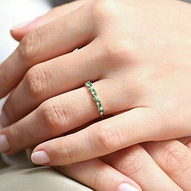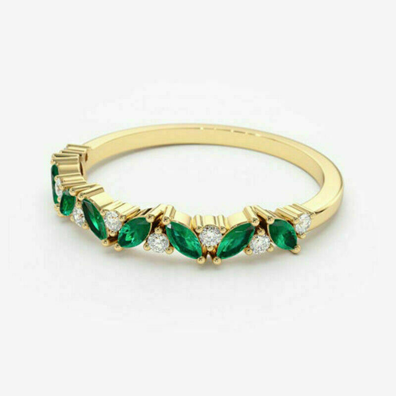 Halloween Speciale - 2Ct Taglio Marchesa Verde Smeraldo Anello 14K Oro Giallo