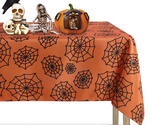 Halloween Tablecloth- Rectangle 60X84 Inch Orange Spider Web Pattern Wrinkle Res