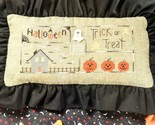 Halloween Trick or Treat Cross Stitch Holly House Designs Linen + Ghost Button