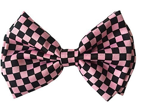 Pink and Black Checkered Bowtie which comes with an adjustable elastic band and a metal enclosure