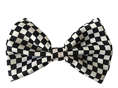 White and Black Checkered Bowtie which comes with an adjustable elastic band and a metal enclosure