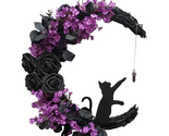Welcome to our Halloween wonderland, where spooky meets cute with our Creepy Halloween Black Cat Wreath! This moon-shaped black grapevine wreath is adorned with black roses, black cats, and small purple flowers, creating the perfect blend of cuteness and scariness. Hang it on your front door for a show-stopping decoration that will attract passing neighbors and delight trick-or-treaters. Easy to use with its included lanyard, this wreath will not wilt or fade, ensuring durable and repeated use. Safely transported and packaged in a sturdy box, it's ready for seasonal storage. Embrace the uniqueness of this scary Halloween door wreath, ideal for happy Halloween themes, spooky home decorations, gothic accents, and more! Handmade with high-quality grapevine, it exudes a creepy charm, making it a fantastic Halloween party gift for friends and family. Versatile and widely used, this Halloween wreath is perfect for fireplaces, porches, windows, walls, and other spooky home decorations. Add it to your Halloween festivities as a striking party decoration or door greeting to welcome friends and guests! Please note, the wreath measures 11.8 inches, so confirm the size before purchasing to ensure the perfect fit for your Halloween decor.