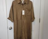 - Halston Med Button Front Roll Sleeve Brushed (Sueded) Shirt Dress Middy NO BELT