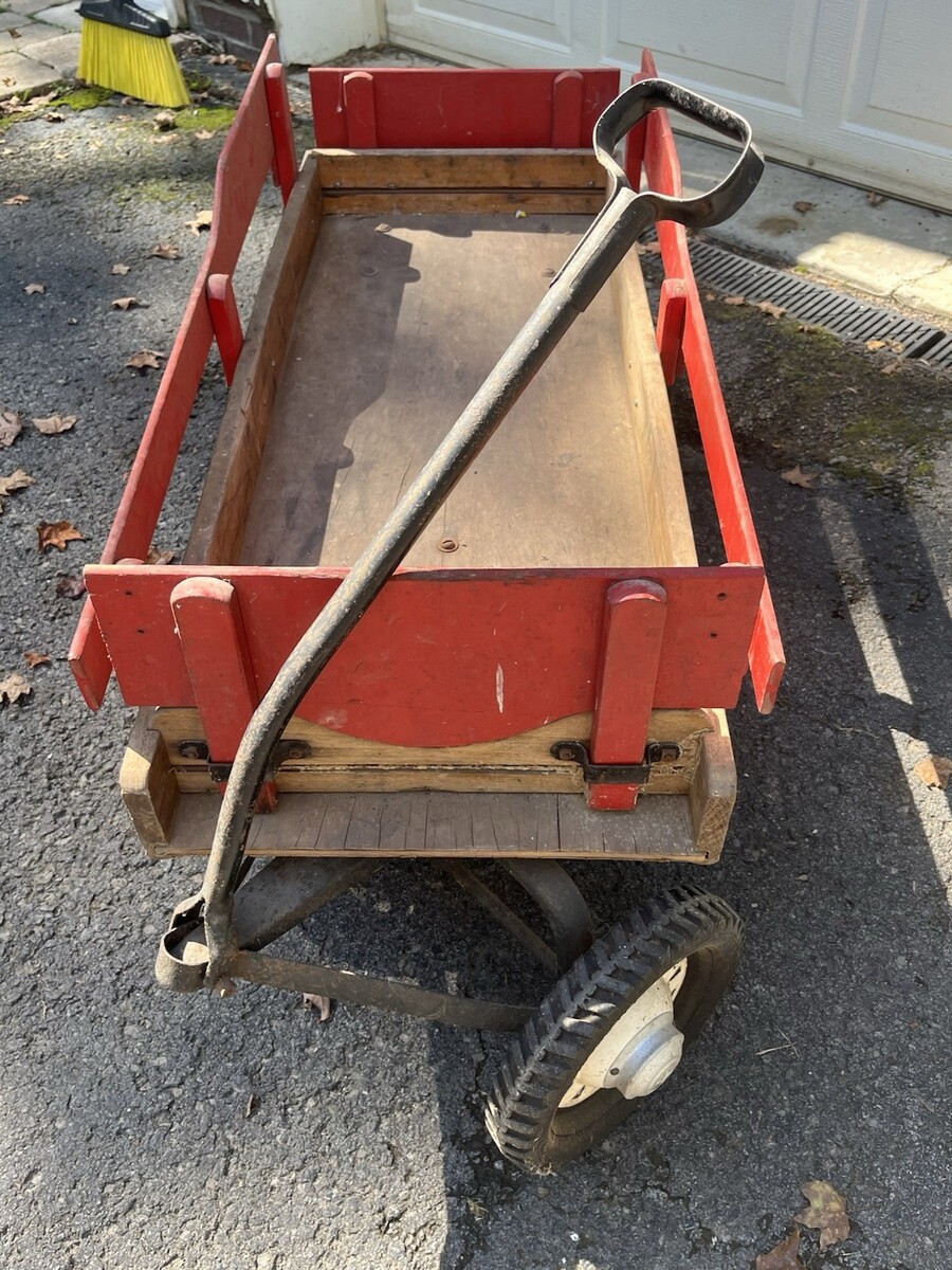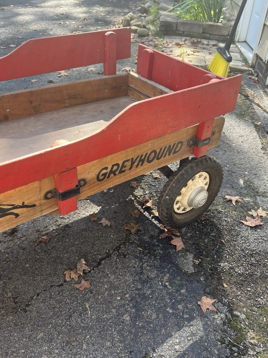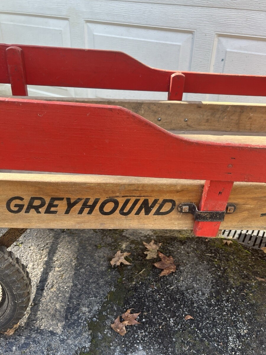- Hamilton Greyhound Wood Wagon 1930s Rubber Wheels Slat Siding Wooden Base