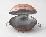 Prepare delicious seafood dishes, tender chicken and creamy curries in this hammered copper cataplana. A traditional pan used in Portugal to make paella, it slow-cooks food while closed so all the flavors, aromas and nutrients are retained. Copper naturally transfers and distributes heat evenly to the tin-lined interior, making it easy to adjust the temperature.