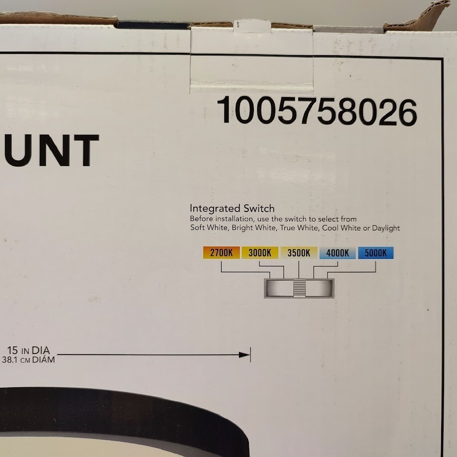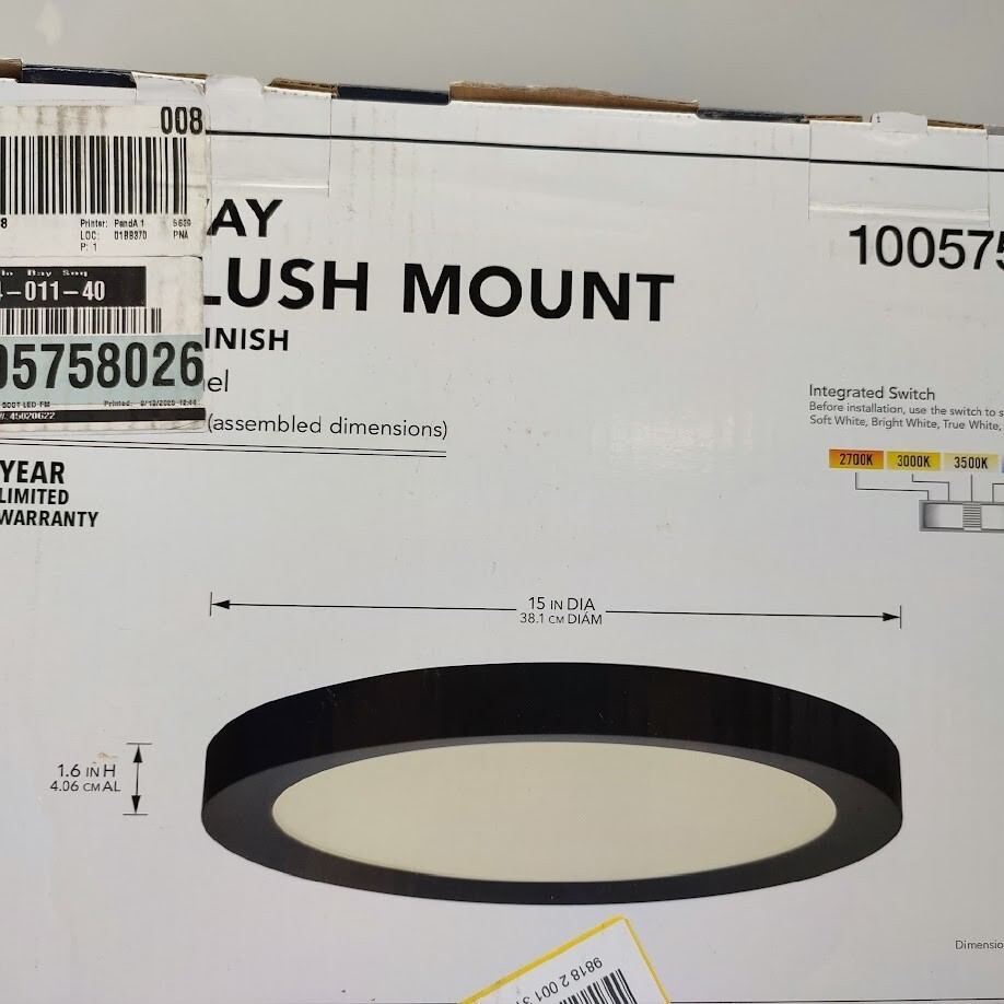 The edgelit technology of the 15 in. Matte Black Ceiling Flushmount has a 90 CRI high color rendering that creates a perfect illumination and makes this fixture completely glare free providing more natural light for your home or office. The long-lasting LED technology provides light output equivalent to 150-Watt of traditional incandescent lighting, while using less than 20% of the energy for year round savings. It features a selectable color temperature feature which allows you to choose your preferred white light color: warm 2700K, soft white 3000K, neutral white 3500K, bright white 4000K, or daylight 5000K. The ENERGY STAR certified light source is maintenance free with no bulbs to change. You'll enjoy a light with a sleek, low profile and soft industrial design and it's even easy to install with a provided bracket and only requires 1-person to install.