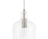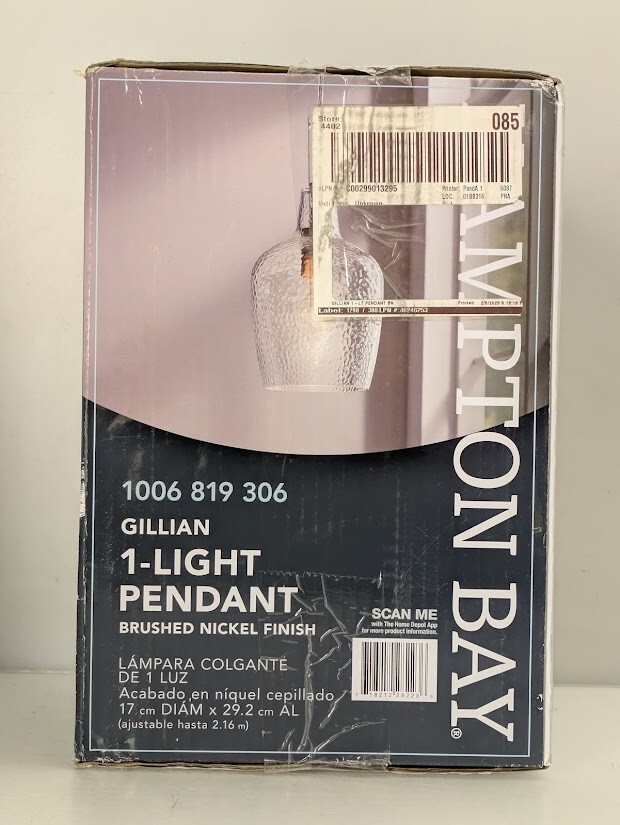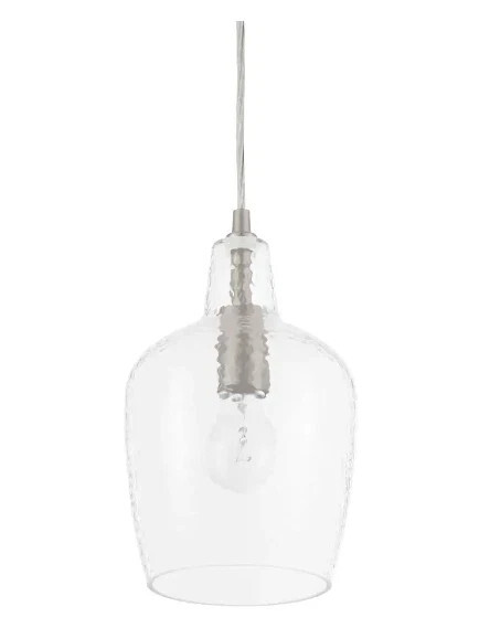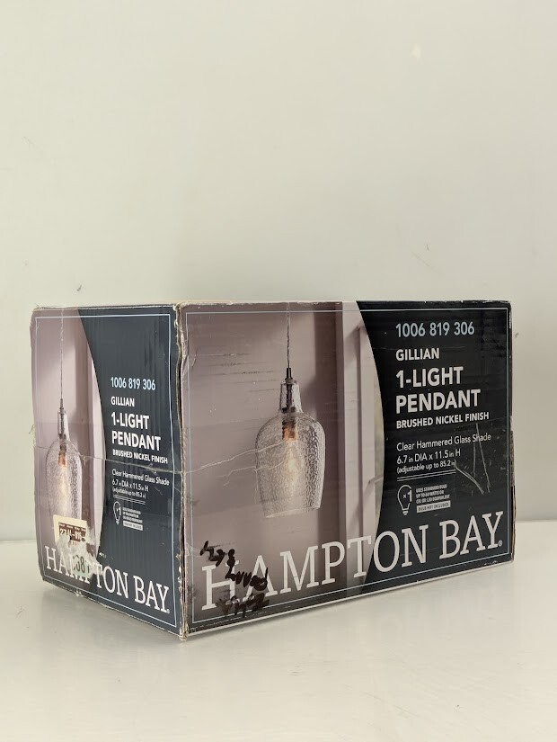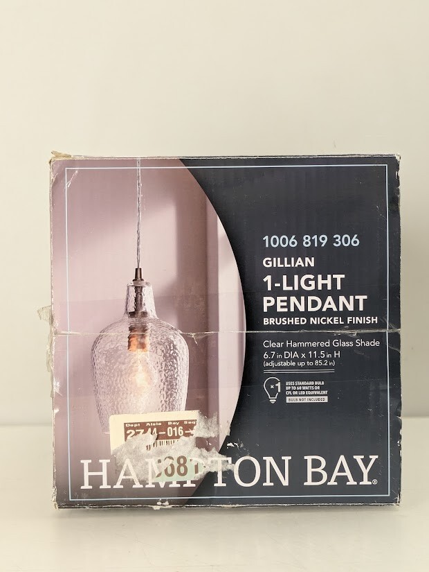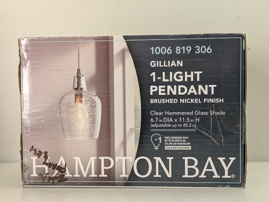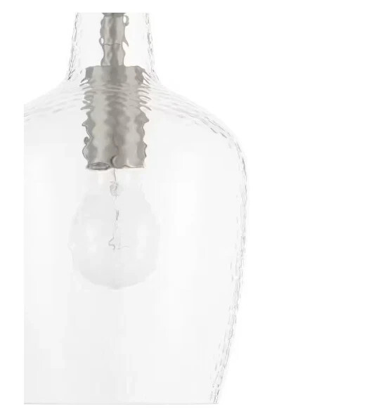 Hampton Bay is proud to introduce a brushed nickel finish accented with clear hammered glass mini pendant. It's a perfect choice over your kitchen island or dining area. Constructed of steel this mini pendant is durable, sustainable and easy to care. The transitional style will fit any home decor. Uses 1 60-Watt medium base bulb (sold separately).