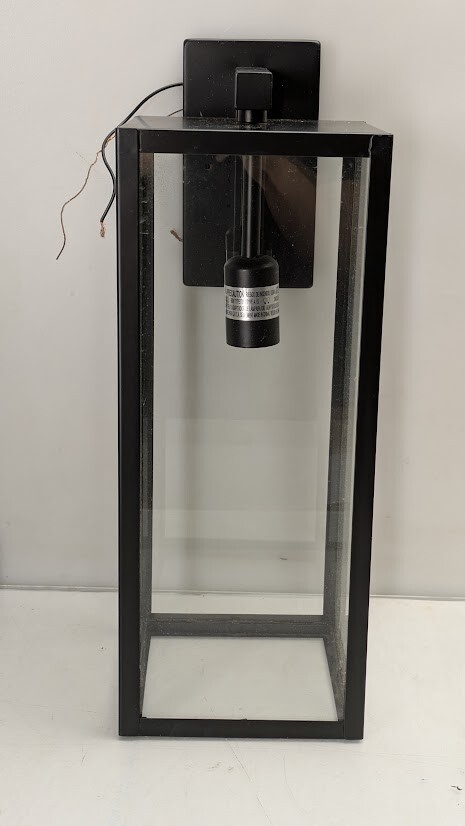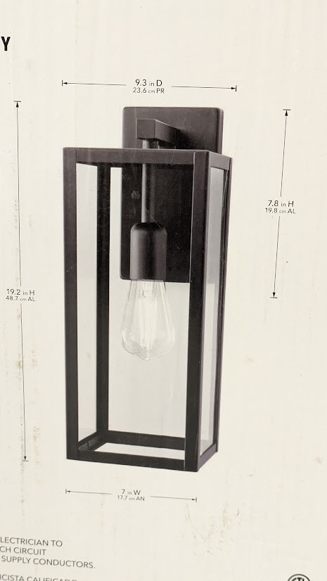 The clean lines, clear glass panels and overall shape of the Hampton Bay 19 in. Outdoor Wall Sconce creates a modern wall light with a farmhouse design feel. A vintage-inspired bulb would add the right embellishment to make this exterior wall lantern truly a work of art. The matte black finish complements all decor and showcases your bulb in just the right way. To create a finished look, pair this outdoor light up to have symmetry at your front door, on your patio or anywhere else your heart desires.
