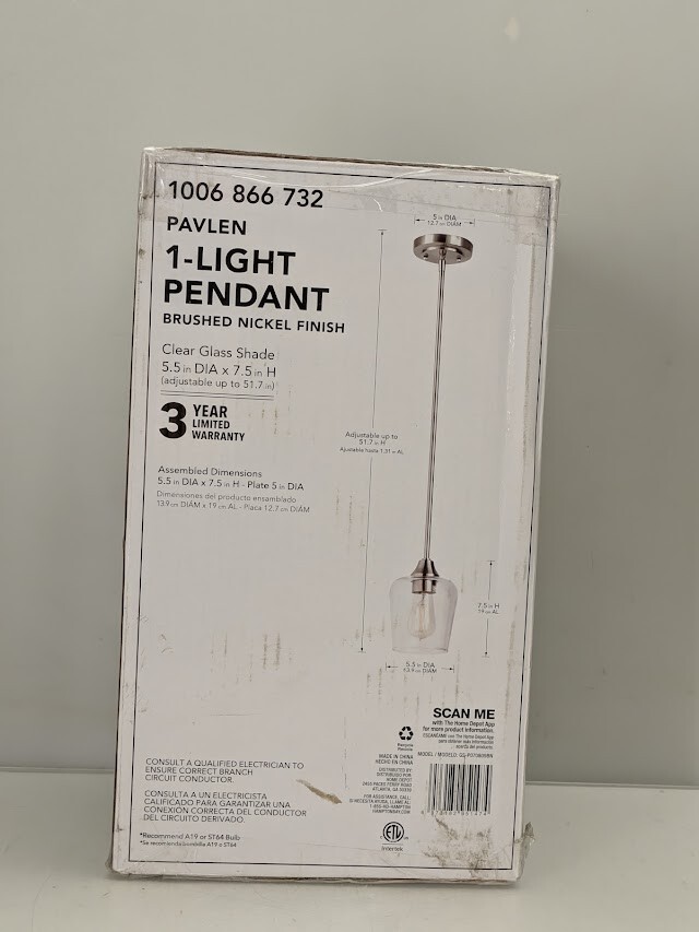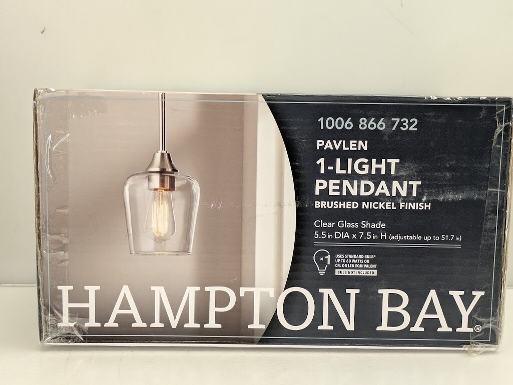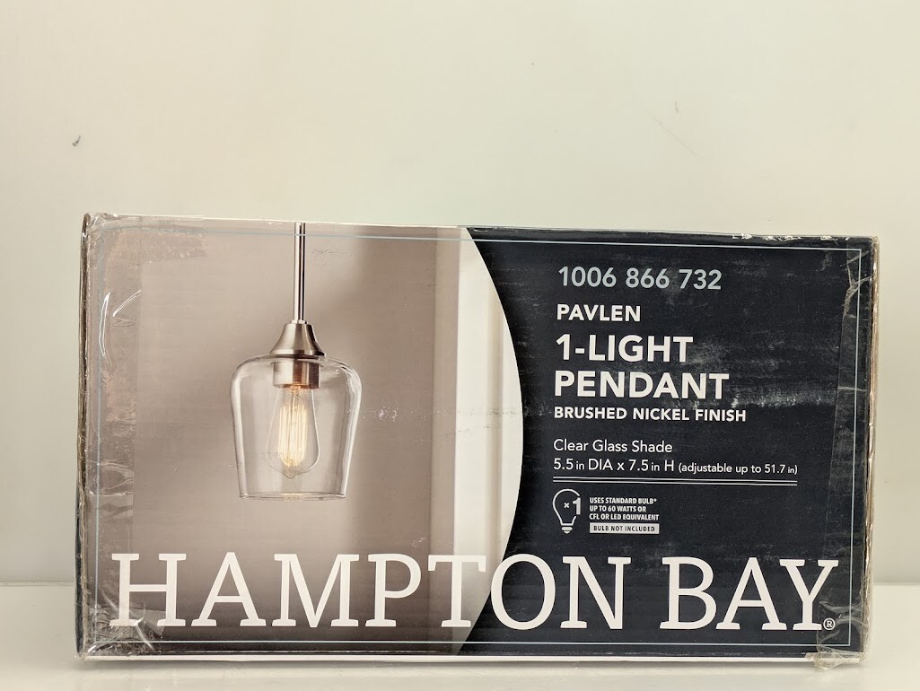 - Hampton Bay Pavlen 1-Light Contemporary Hanging Mini Pendant in Brushed Nickel