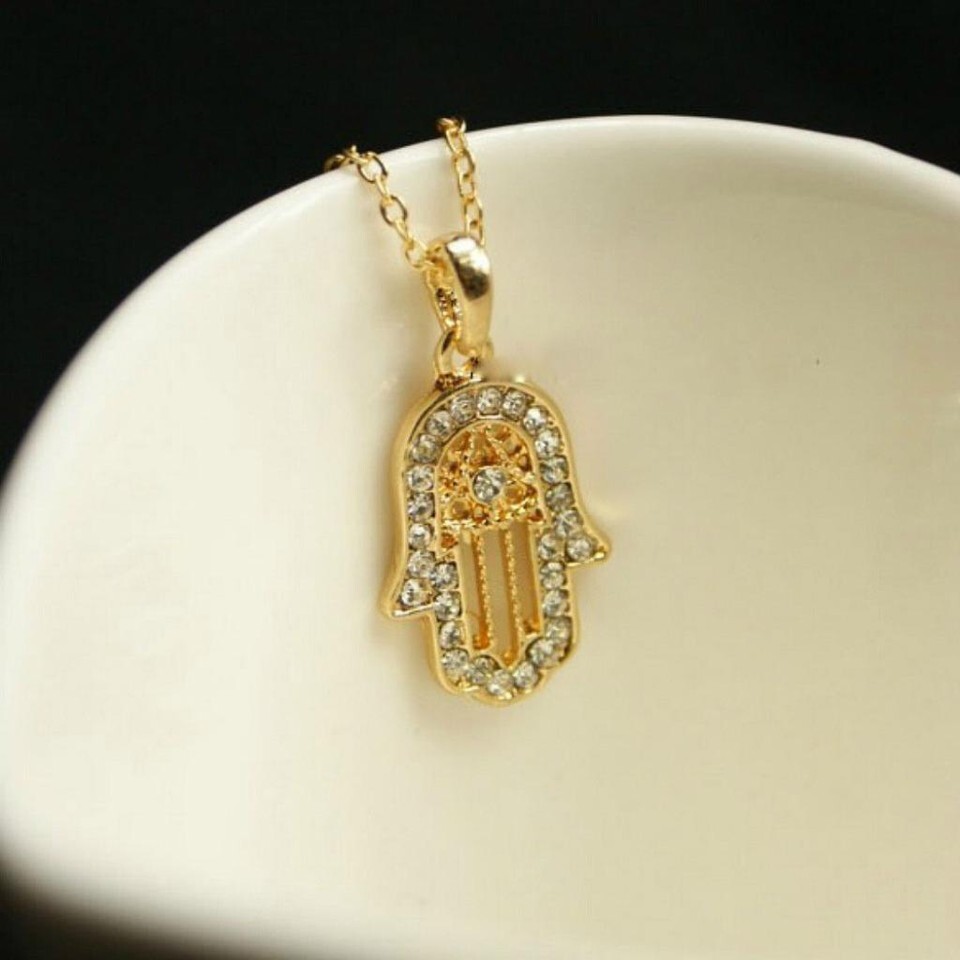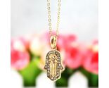 - HAMSA HAND OF FATIMA CHARM NECKLACE 0.75" Small Pendant Sparkling CZ Gold Plate