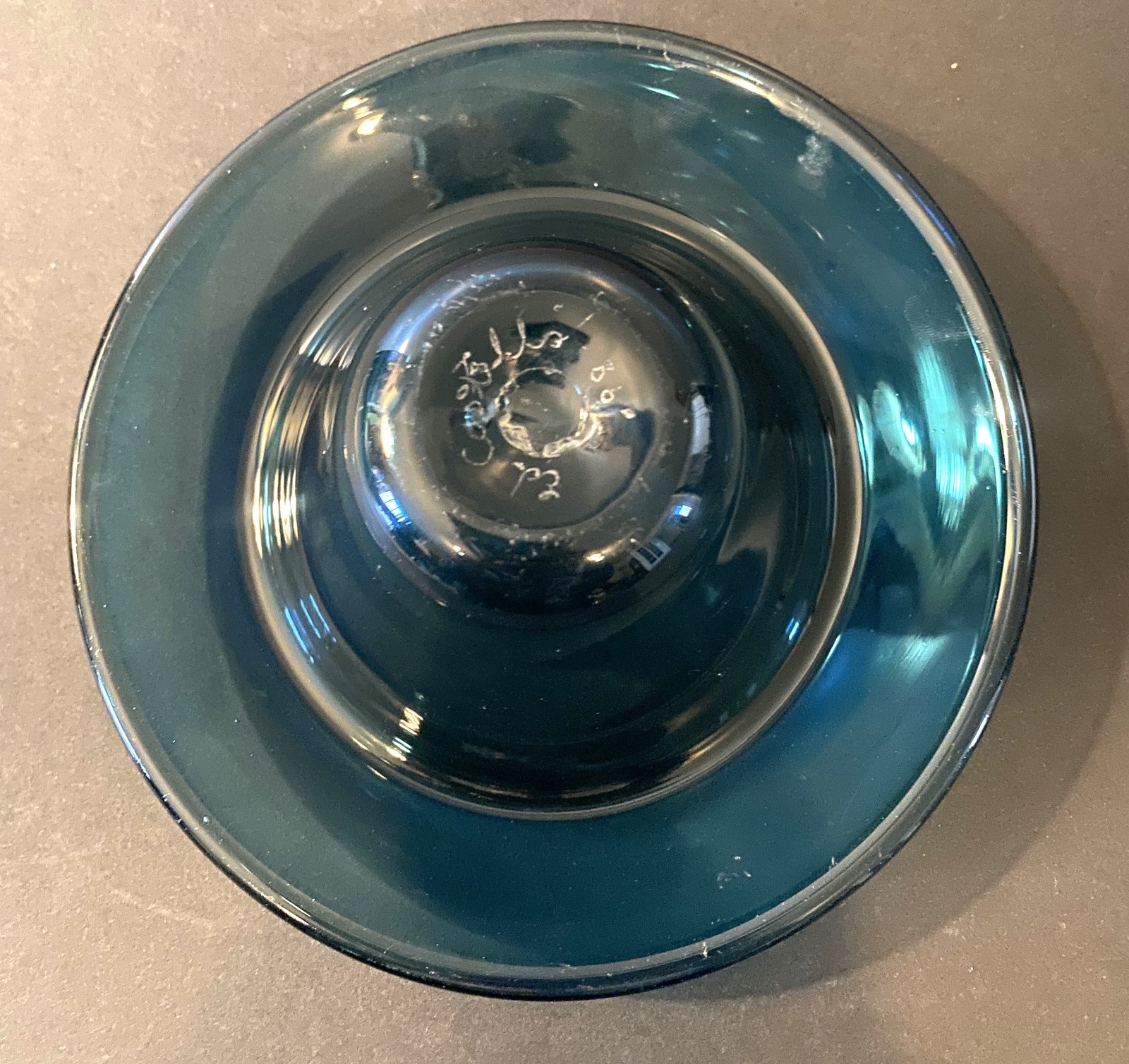 - Hand Blown Cobalt Candy Dish Signed & Dated 1986