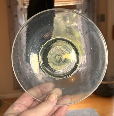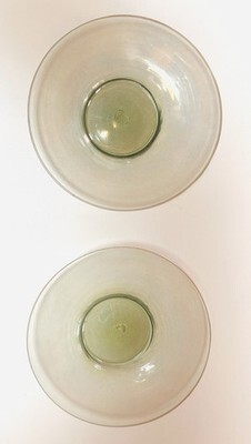 - Hand Blown Green Recycled Glass Iridescent w/ Pink Trim 6 1/4” Plate Set Of 2