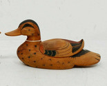 9" Long Hand Carved Hand Painted Wooden Female Duck Asian signed