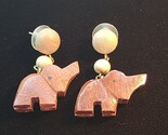 - Hand Carved Natural Wood Elephant Dangle Stud Earrings Three Tone Vintage 1980s