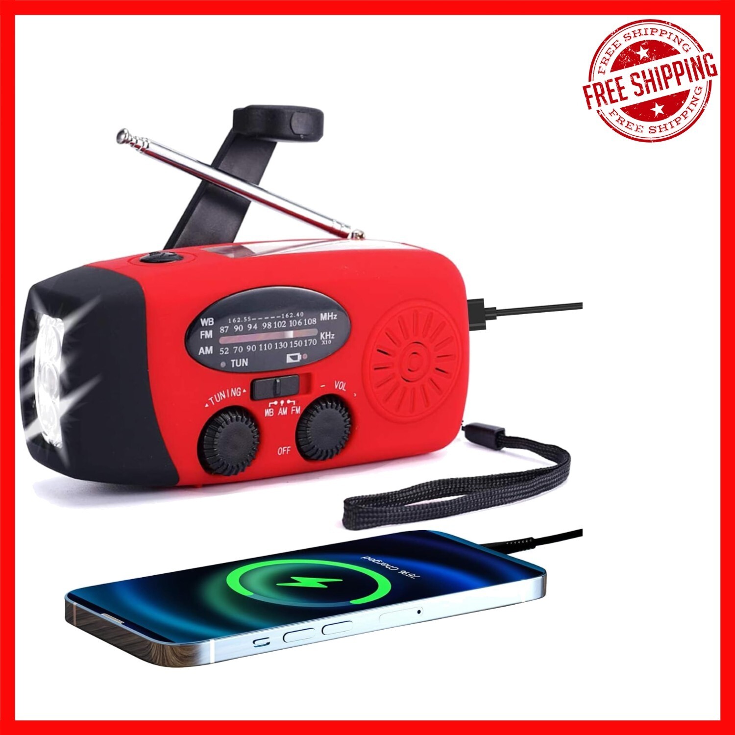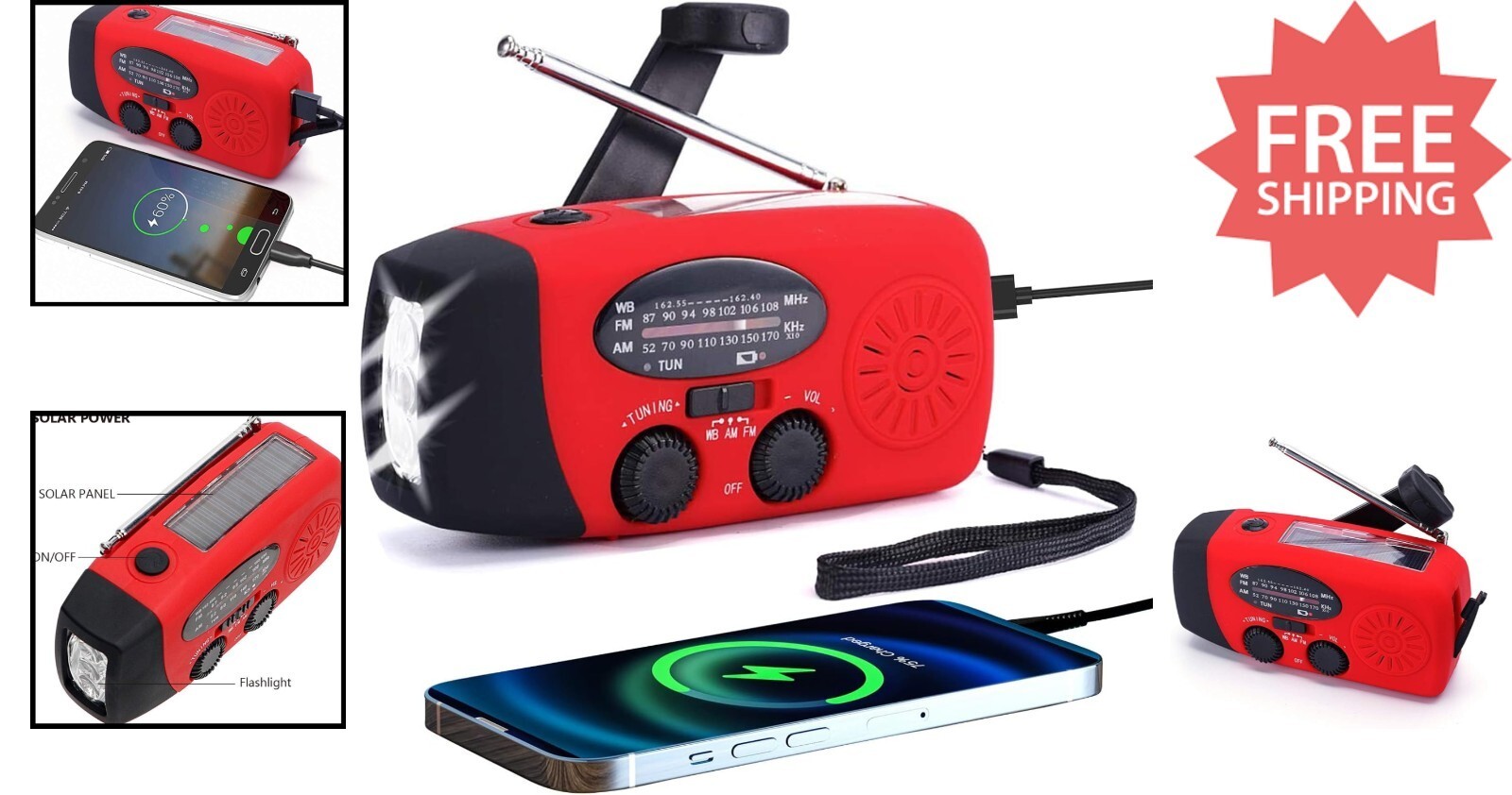 - Hand Crank and Solar Powered Emergency Radio with USB Charger & SOS Flashlight