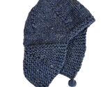 - Hand Knit Wool Ear Flap Hat Blue Chunky Knit Winter Cap