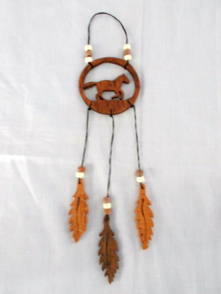 You are viewing a hand made / hand crafted ALL WOOD Dream Catcher with a WILDLIFE ANIMAL FULL BODY RUNNING HORSE / PONY cut out in the center and 3 dangling cut out wooden FEATHERS