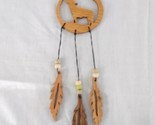 HAND MADE WOOD FULL BODY HOWLING WOLF DREAM CATCHER w 3 DANGLING FEATHERS BEADS