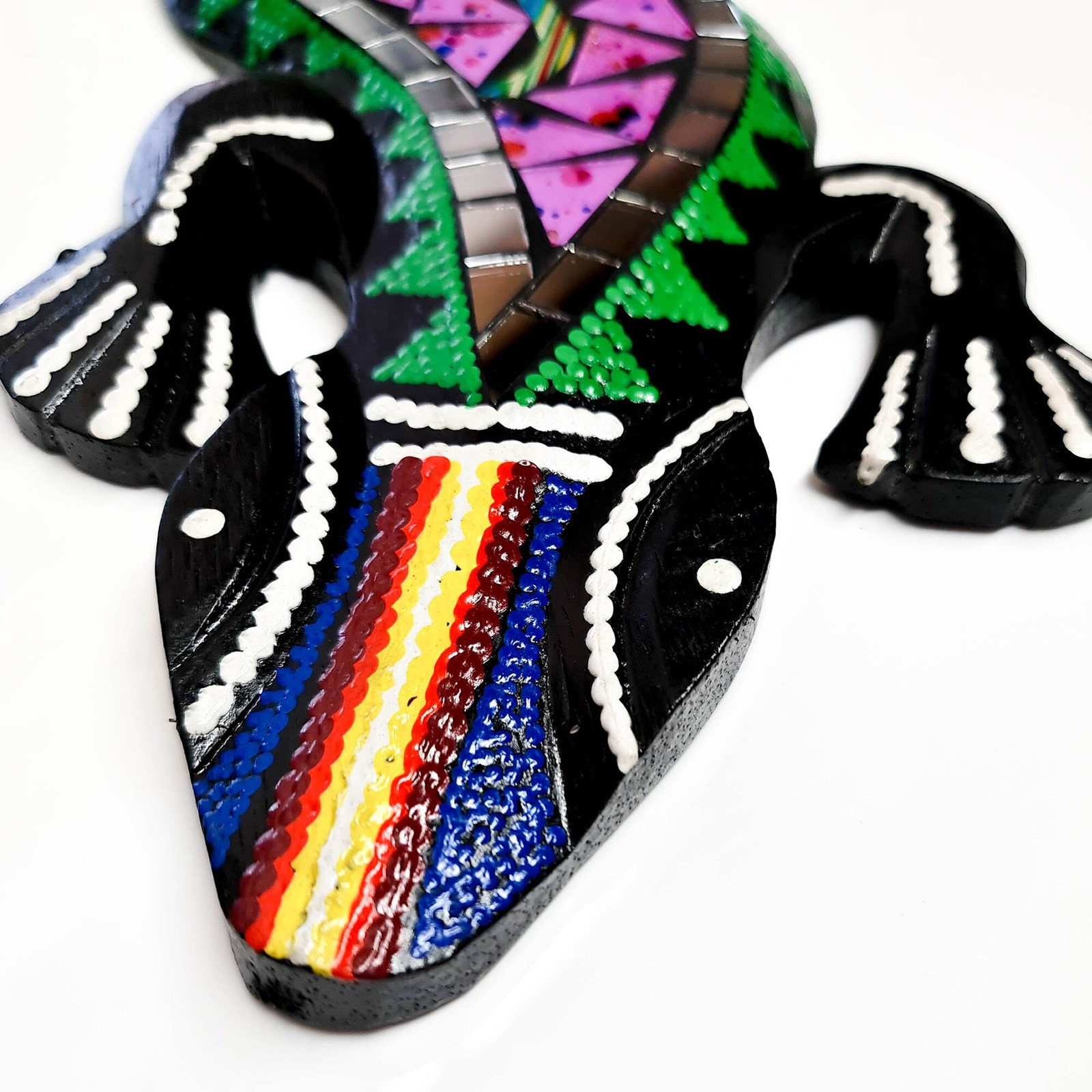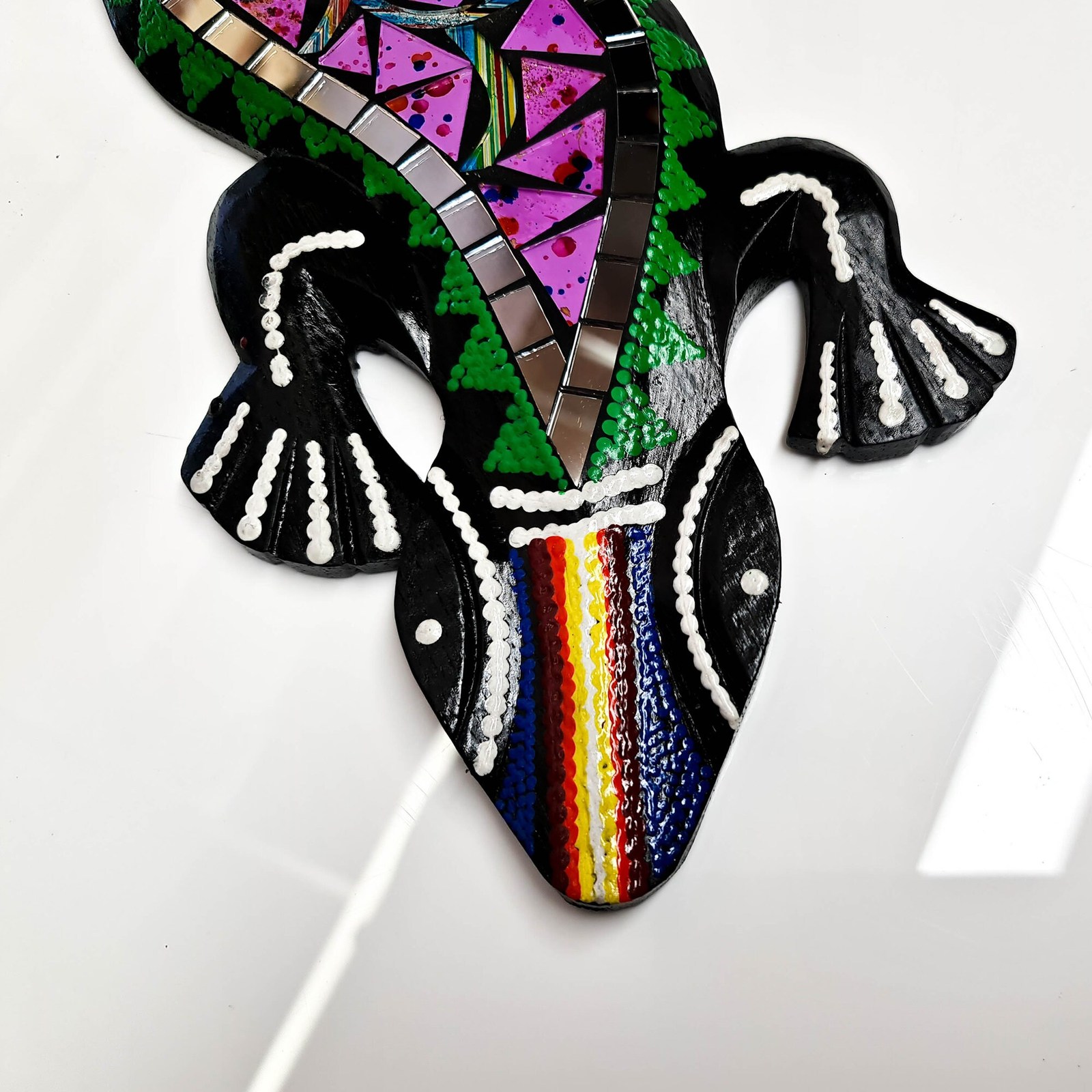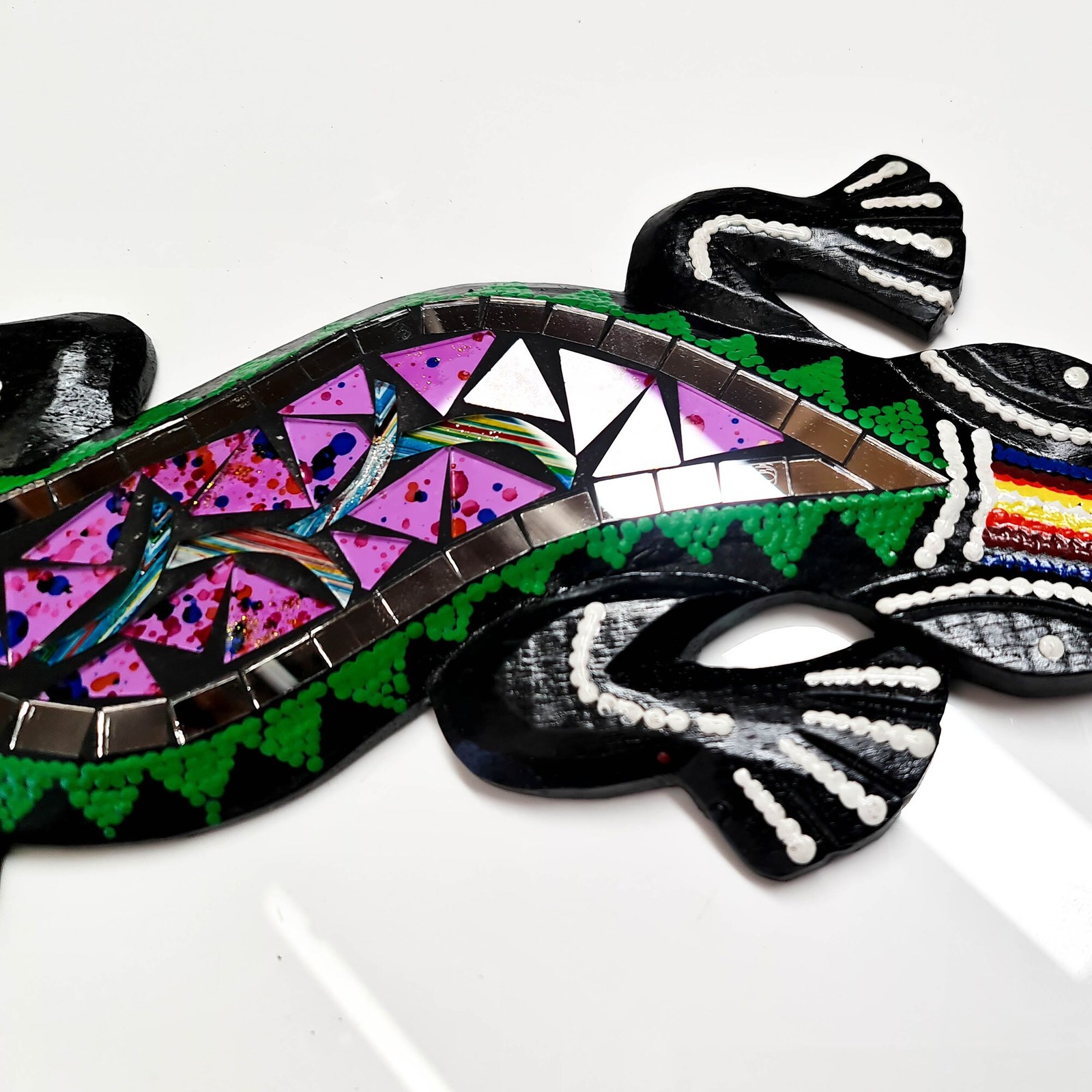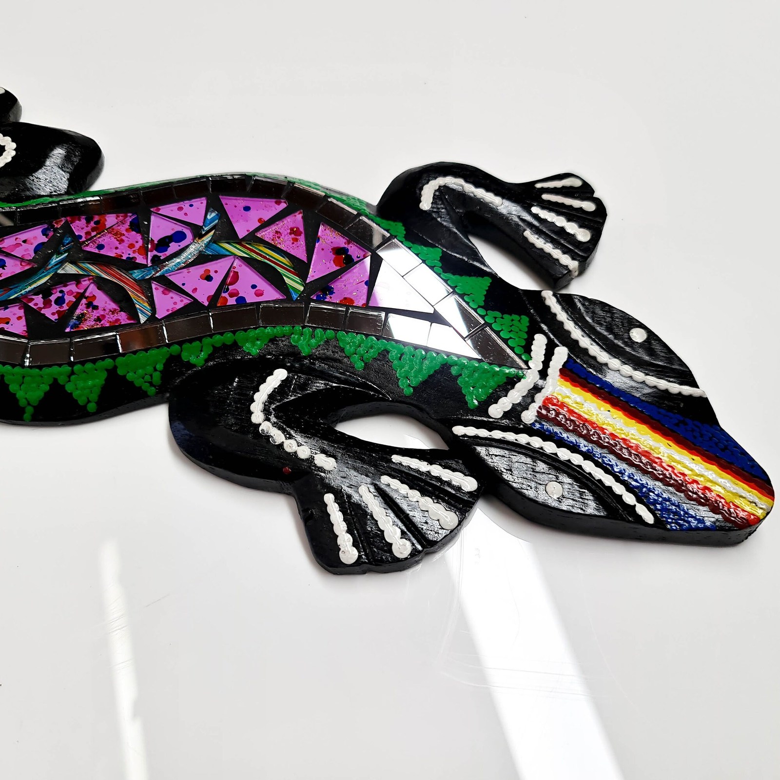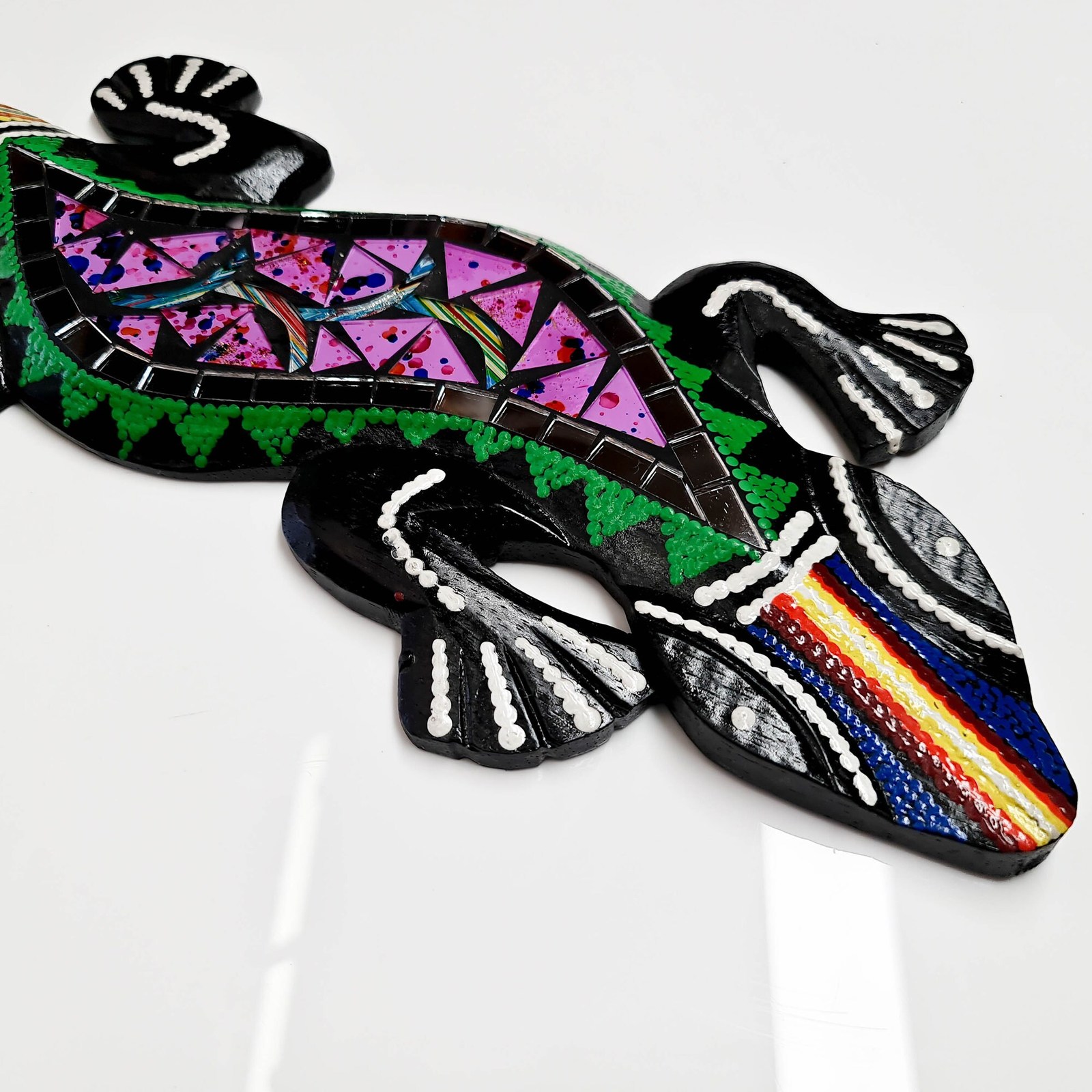 - Hand Painted Cut Glass Wooden Wall Art Hanging - Unique Decorative Mexican Gecko