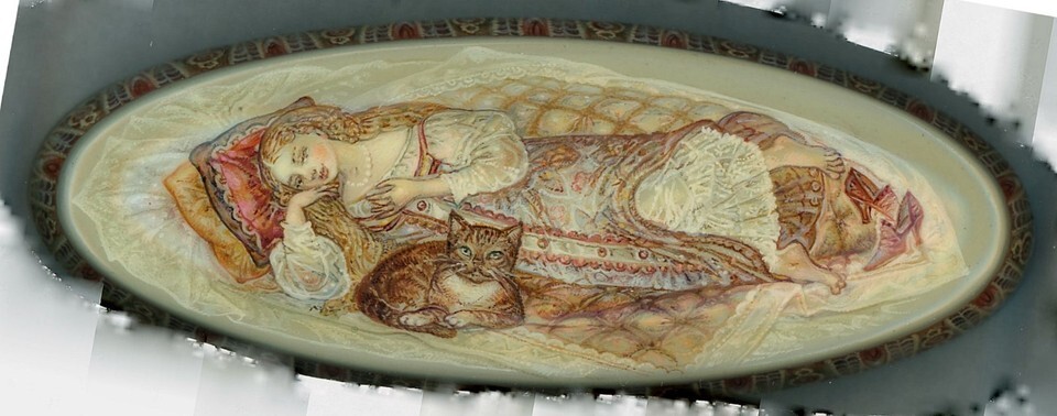 - Hand Painted Fedoskino Russian Lacquer Box "To Lady And She Cat" by N.V.- sho...