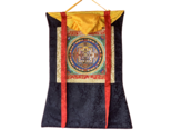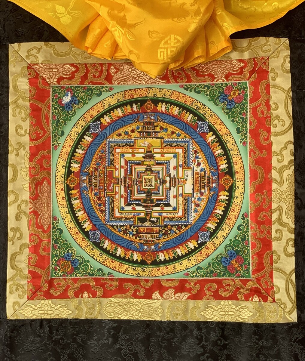 - HAND PAINTED FLOWER KALACHAKRA MANDALA TIBETAN THANGKA PAINTING WITH SILK FRAME