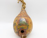 - Hand Painted Gourd Hanging Birdhouse Birdfeeder Cottage 11" Artist Signed Sheila